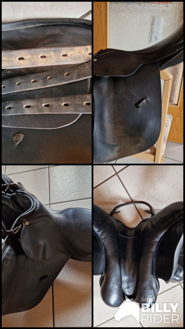 Siodło skokowe - Siodło skokowe z niewielkimi śladami zużycia, które kupiłem w tym stanie około 3 lata temu. Poza tym jest to sprawne siodło, o które zawsze dbałem. Używałem go bardzo mało. Siedzisko nie jest wytłoczone, szacuję 16,5, bardziej dla drobnych jeźdźców. Lekkie siodło, w którym siedzi się blisko konia. Bardziej dla koni z niskim kłębiem. Miałam je na moim Haflingerze o wzroście 1,48.