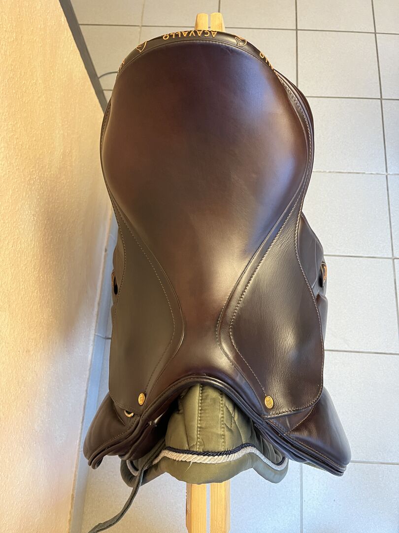 Siodło skokowe Acavallo Modigliani 17'' - Na sprzedaż jest 3-letnie siodło skokowe Acavallo Modigliani. Siodło to charakteryzuje się przyjaznym dla użytkownika systemem MAG (Micrometer Adjustable Gullet). Łęk można idealnie dopasować do grzbietu konia za pomocą dołączonego klucza, co czyni go idealnym dla młodych koni, które wciąż się zmieniają. Siodło wykonane jest z wysokiej jakości miękkiej skóry cielęcej, która gwarantuje długą żywotność. Półgłębokie siedzisko zapewnia doskonałe wsparcie i komfort. Siodło było używane przez około 1 1/2 roku.