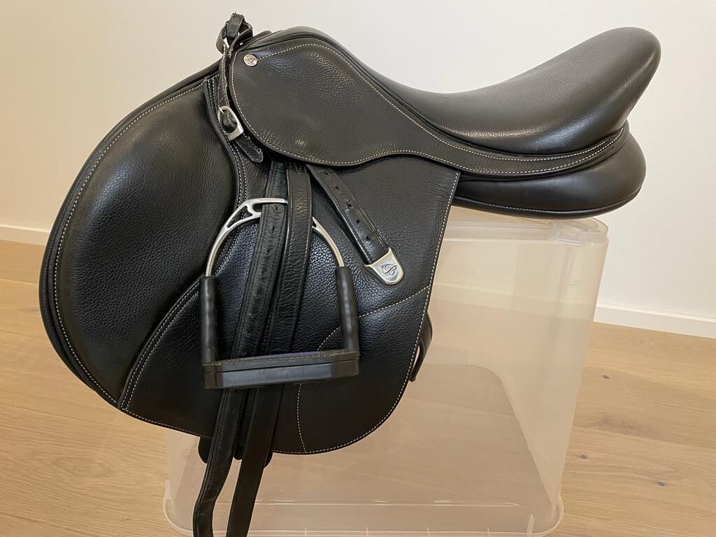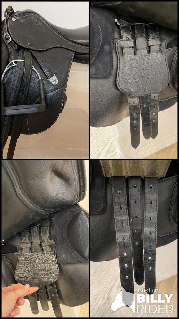 Siodło skokowe Bates Elevation DS+ 43cm (17") - Super zadbane siodło w TOP stanie, bardzo rzadko używane, bardzo wygodne do siedzenia, w zestawie panele na rzepy w różnych rozmiarach, bez strzemion i skór strzemion, zawsze przechowywane w suchym miejscu, regularnie pielęgnowane. Rozmiar 43cm (17") Z systemem poduszek CAIR i systemem wlewów paliwa EASY-CHANGE. Produkcja w 2008 r.