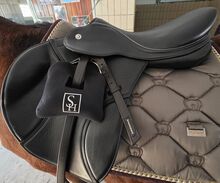 Siodło skokowe Butterfly model Claudia 18 cali - Nadaje się również do krótkich grzbietów i kucyków ze względu na wyciętą komorę i krótki kontakt. Mostek zapobiega naciskowi na kłąb i łopatki.