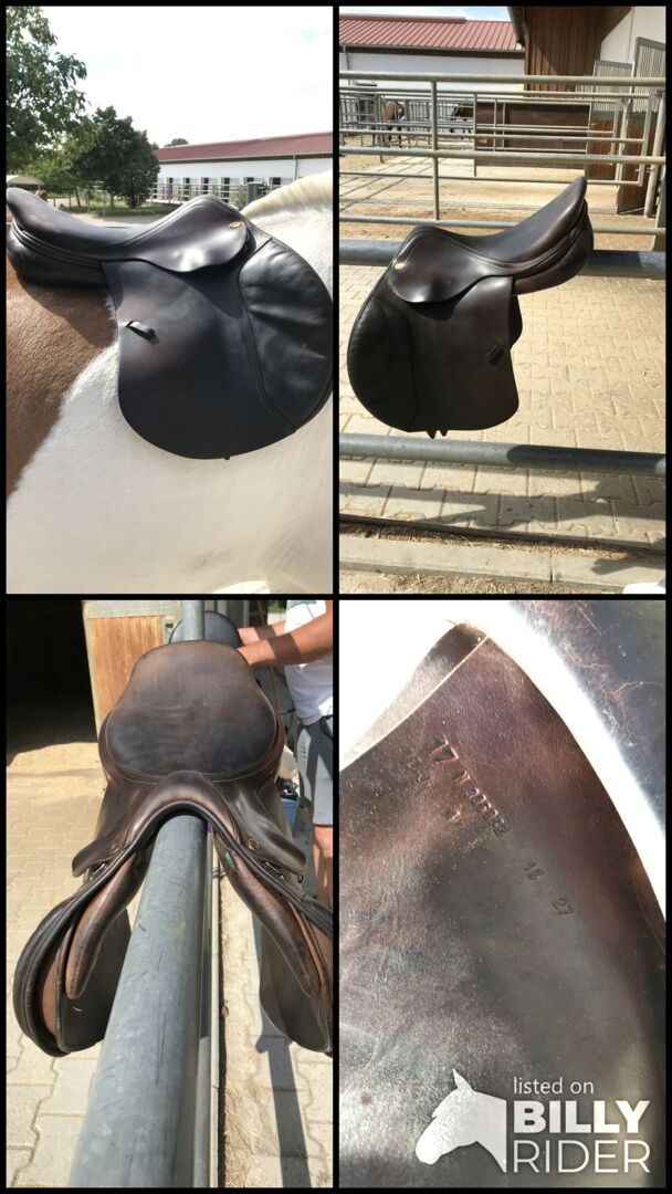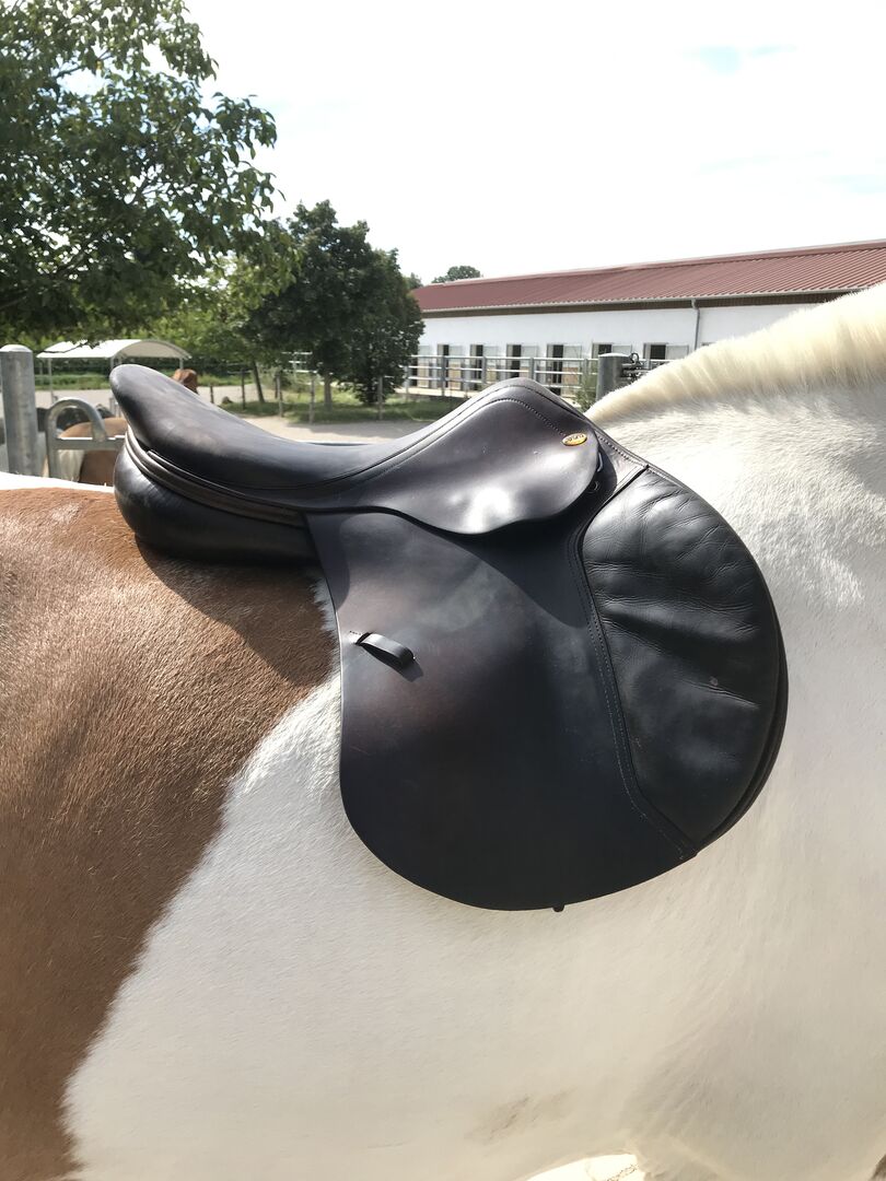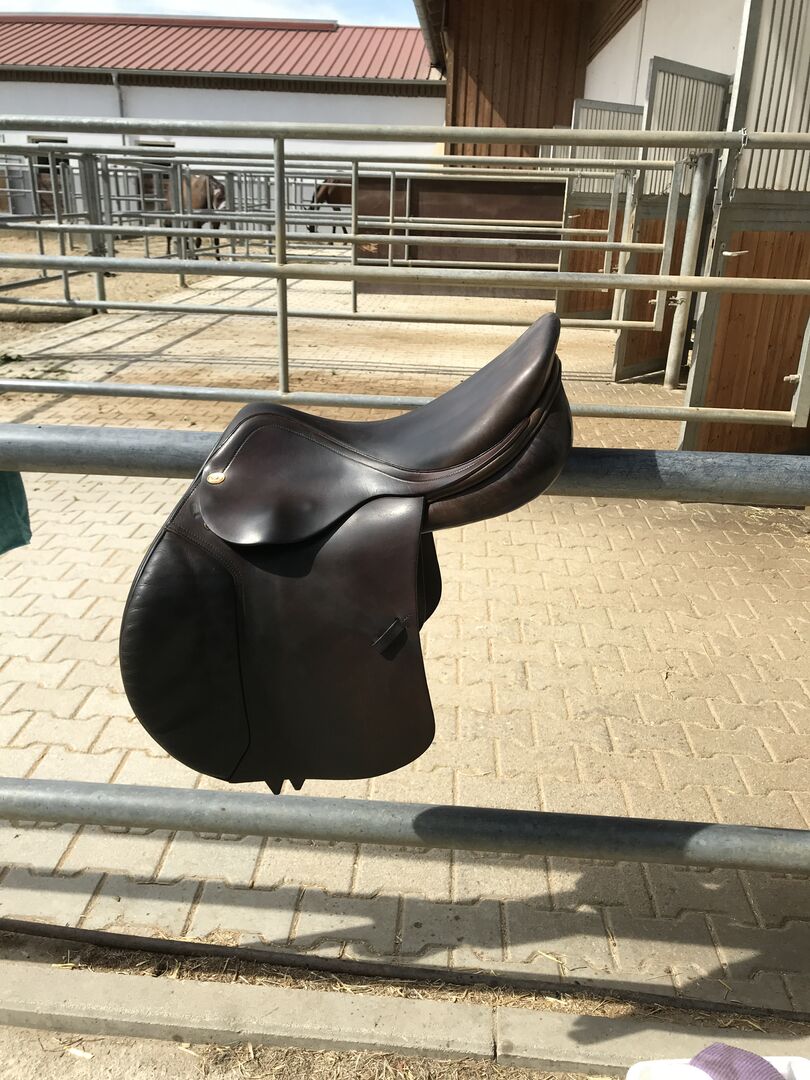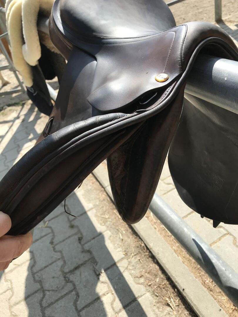 Siodło skokowe Cobra brązowe 17" - Sprzedam brązowe siodło skokowe Cobra o rozmiarze 17 cali i średniej komorze. Siodełko ma zwykłe ślady użytkowania, ale jest w dobrym stanie. Wyściełanie jest nadal miękkie i równomierne. Brakuje małego szwu pod klapą siodła (patrz zdjęcia), ale nie ma to wpływu na funkcjonalność i nie jest widoczne, może to być uszyte przez rymarza za rozsądną cenę. Uzda jest w dobrym stanie. Niestety nie poszerza się wystarczająco dla mojego konia.