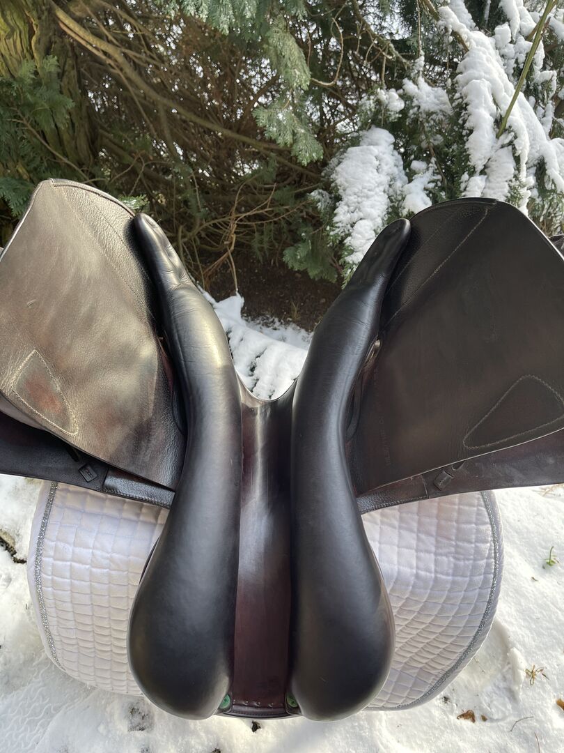 Siodło skokowe Cobra - brązowe, 18" - Siodło zostało zakupione z drugiej ręki w 2021 roku bezpośrednio od Cobry za 2000 euro i całkowicie uzupełnione. Było używane tylko sporadycznie (np. jazda konna, gimnastyka skokowa) i jest w dobrym stanie jak na swój wiek.