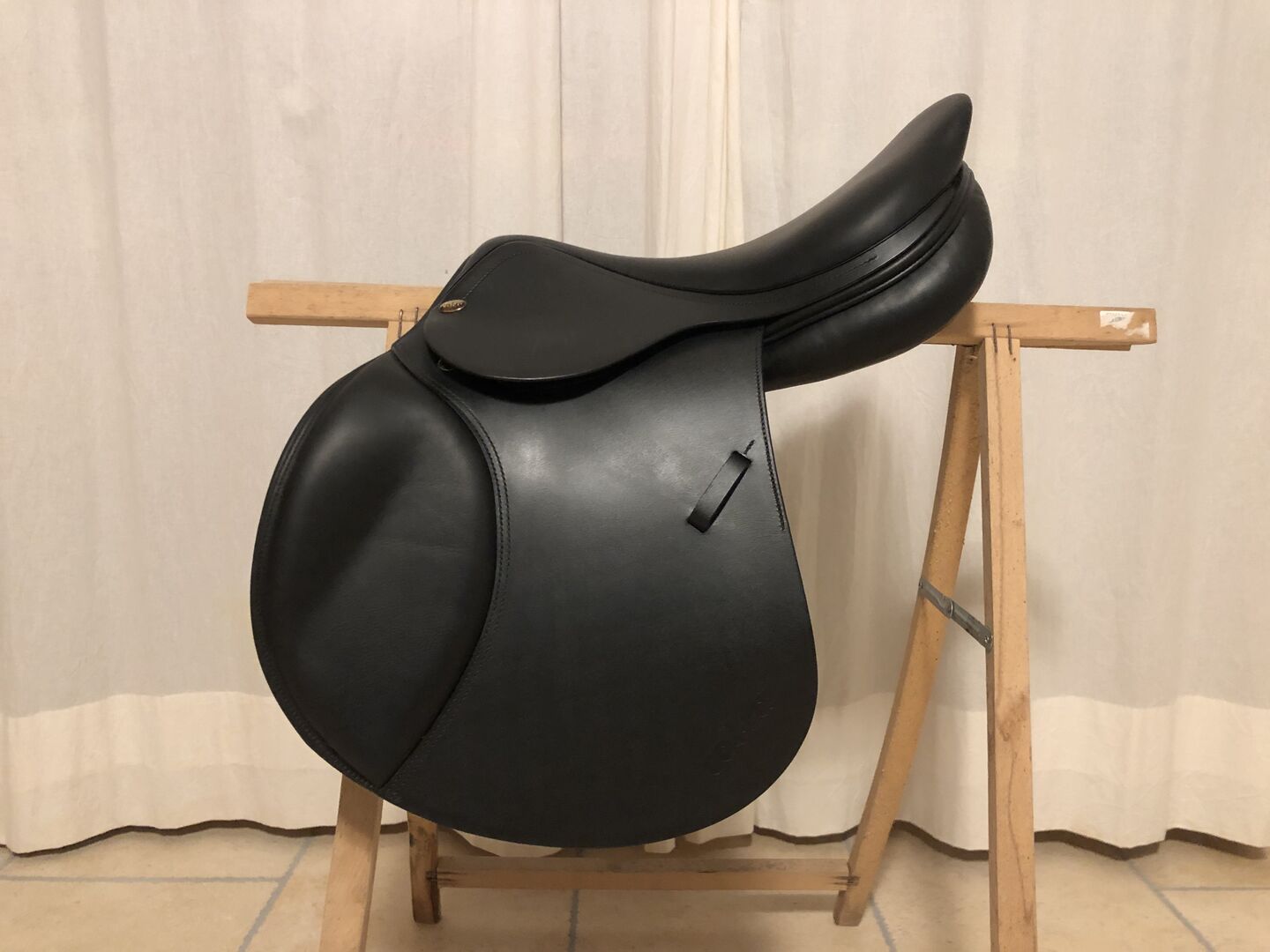 Siodło skokowe COBRA czarne 17,5 cala - Piękne siodło skokowe premium COBRA w doskonałym stanie! Czarna, bardzo miękka skóra, elastyczne mostki, półotwory na paskach do popręgu ułatwiające zakładanie popręgu. Siodło było założone na grzbiet konia maksymalnie 50 razy do chodzenia i dlatego jest prawdziwą okazją. Został on dopasowany do wysokiej, wąskiej klaczy (na zdjęciu widać kłąb) dla jeźdźca ważącego 60 kg i mającego 1,75 m wzrostu. Zawsze przechowywane w suchym miejscu i bardzo zadbane. Chętnie wyślę, jeśli koszt przesyłki zostanie pokryty.