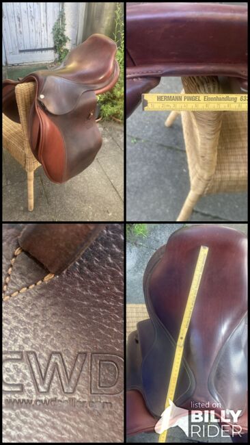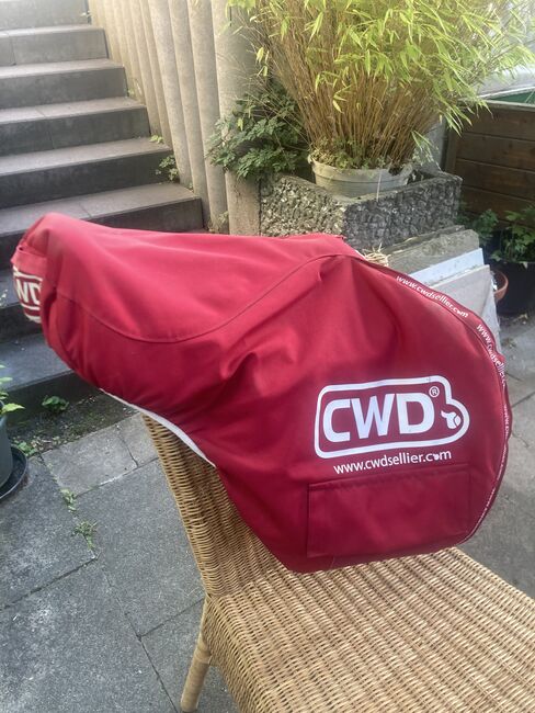 Siodło skokowe CWD - CWD SE02 170 TR 3D - 17 cali - Sprzedajemy dobrze utrzymane, używane siodło skokowe CWD. Jest to siodło skokowe CWD SE02 o rozmiarze siedziska 17 cali, wyprodukowane w 2015 r. Ma szczególnie dopasowaną klapę siodła w rozmiarze 3 i dodatkowe cięcie do przodu. Wyściółka z pianki została specjalnie zmodyfikowana za pomocą niestandardowego kodu panelu (805) i dodatkowego reliefu kłębu (RG).