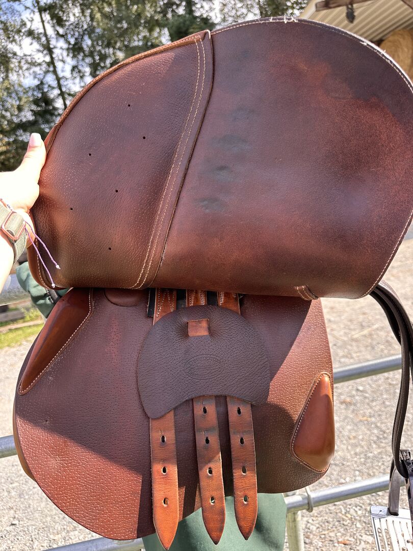 Siodło skokowe Devocoux Biarritz Fr 18,5", DE 18" - Sprzedaję moje bardzo wygodne siodło skokowe Devocoux Biarritz, ponieważ niestety nie pasuje do mojej młodej klaczy. Oferuje świetne wrażenia z jazdy i doskonałą przyczepność dzięki miękkiej i przyczepnej skórze.