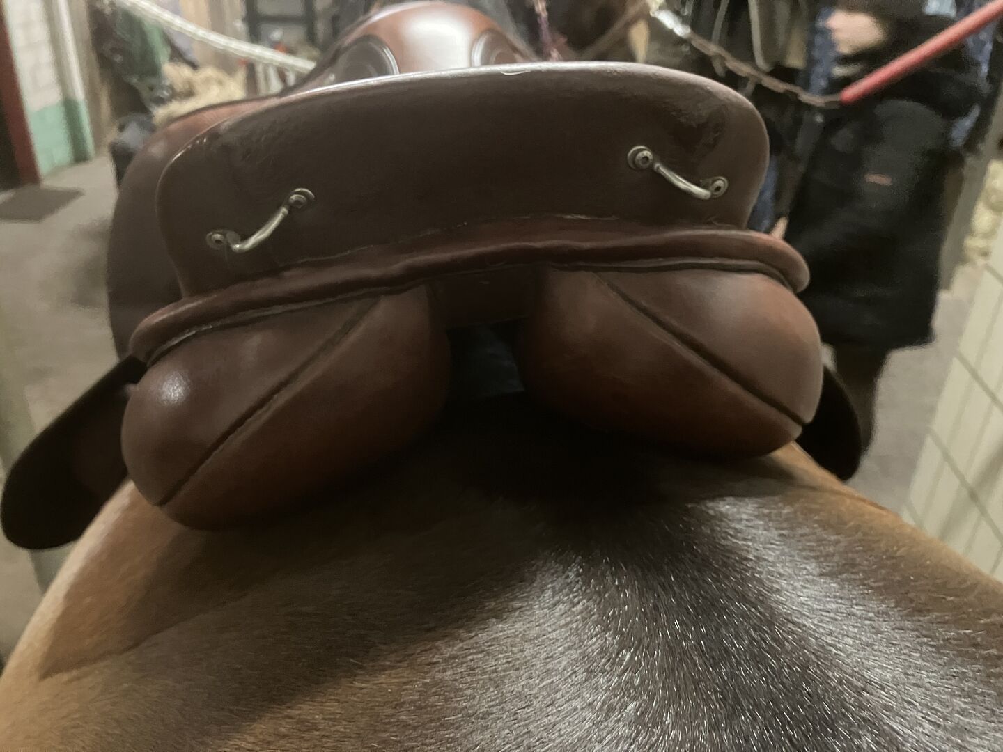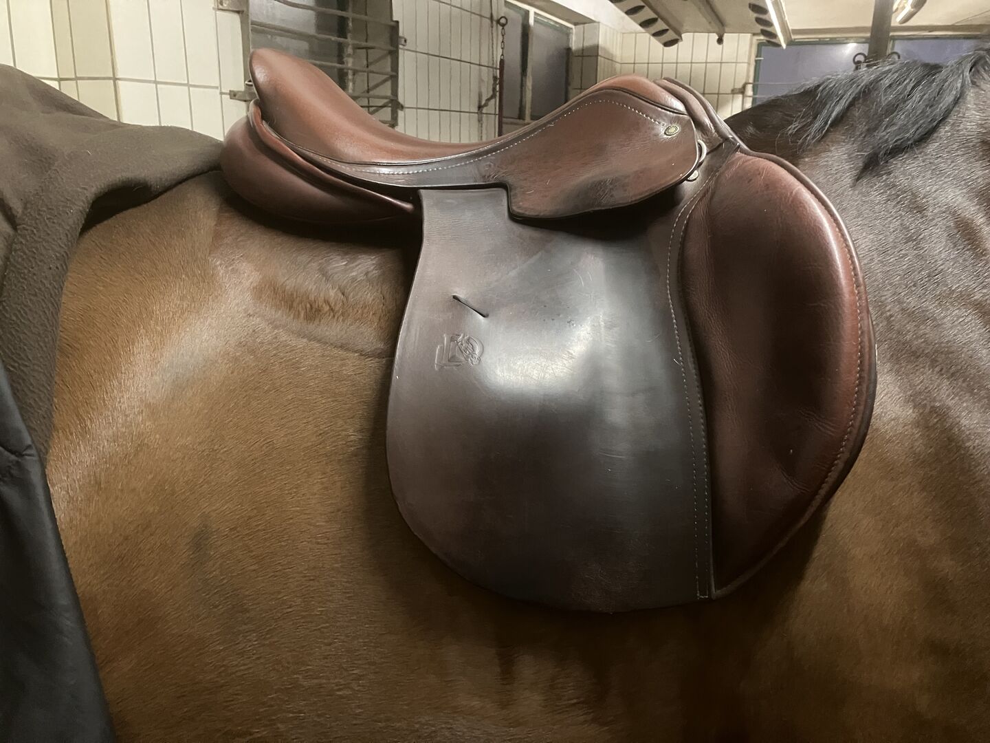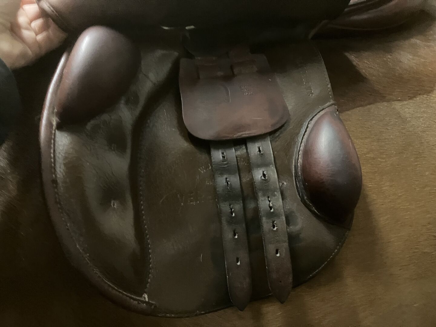 Siodło skokowe dobrze zachowane - Dobrze utrzymane siodło skokowe w kolorze brązowym, dobrze leży na konikach i jest wygodne.