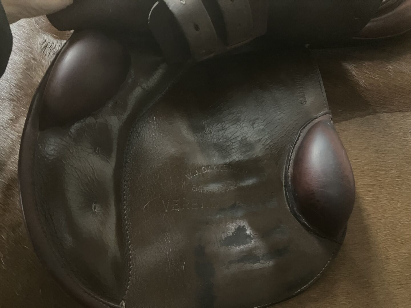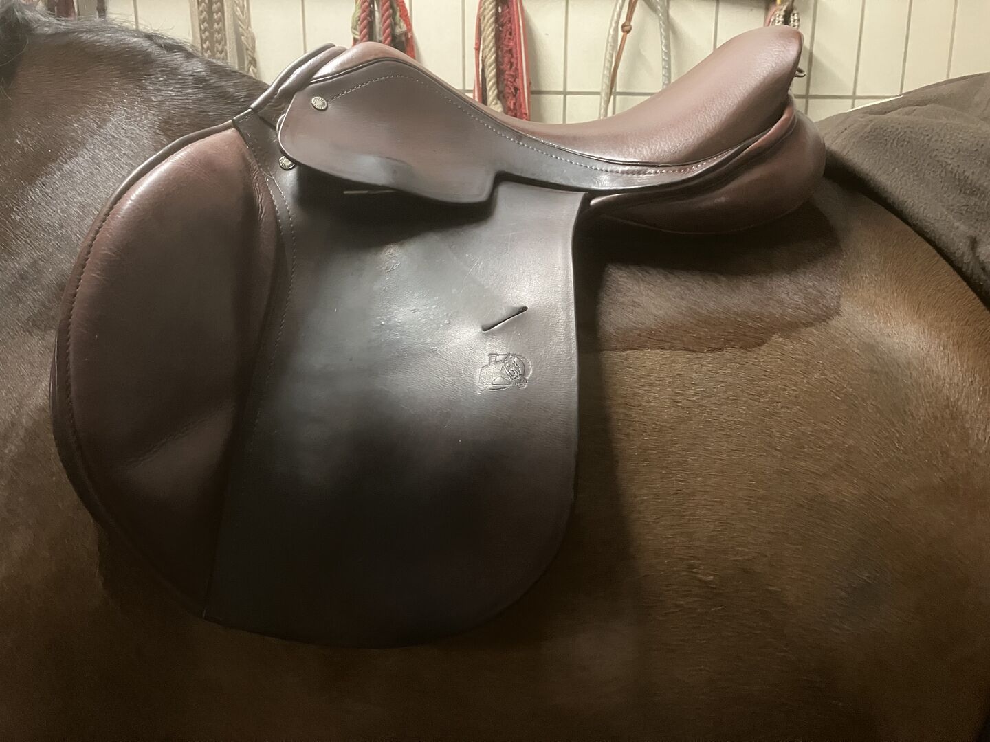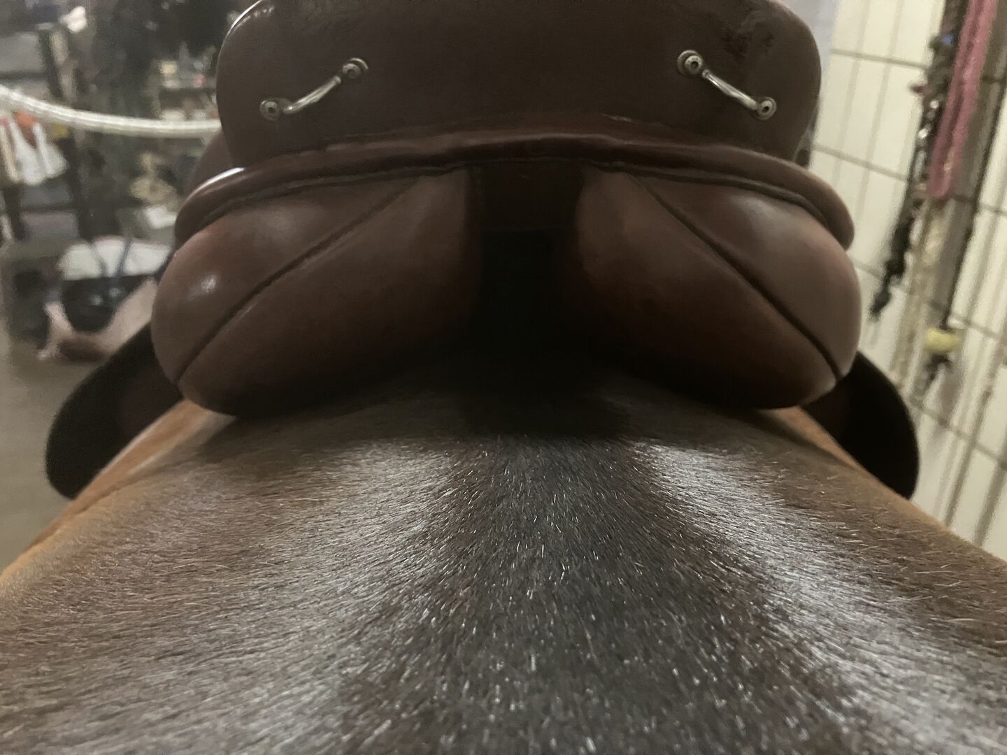 Siodło skokowe dobrze zachowane - Dobrze utrzymane siodło skokowe w kolorze brązowym, dobrze leży na konikach i jest wygodne.