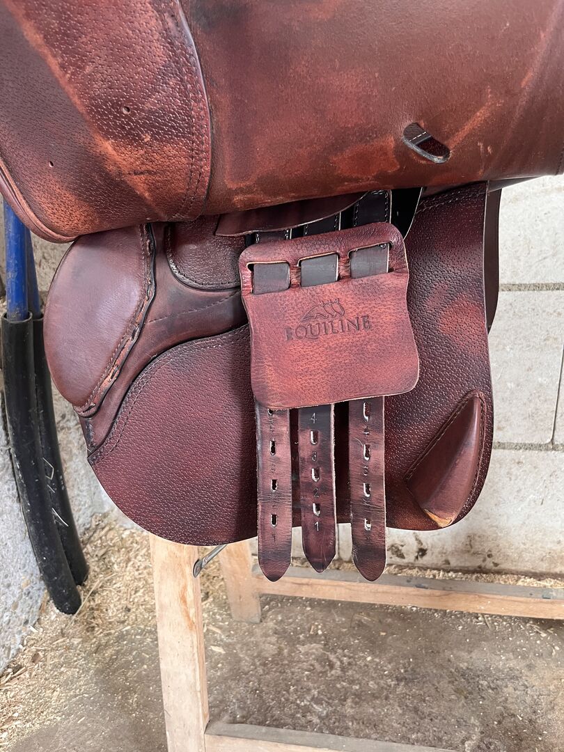 Siodło skokowe Equiline 17 cali 2 lata - Na sprzedaż brązowe siodło skokowe Equiline z 17-calową i średnią (M) szerokością komory. W bardzo dobrym stanie, ponieważ było mało używane. Zawsze zadbane i przechowywane w suchym miejscu. Dostępna karta gwarancyjna od 2023 roku.
