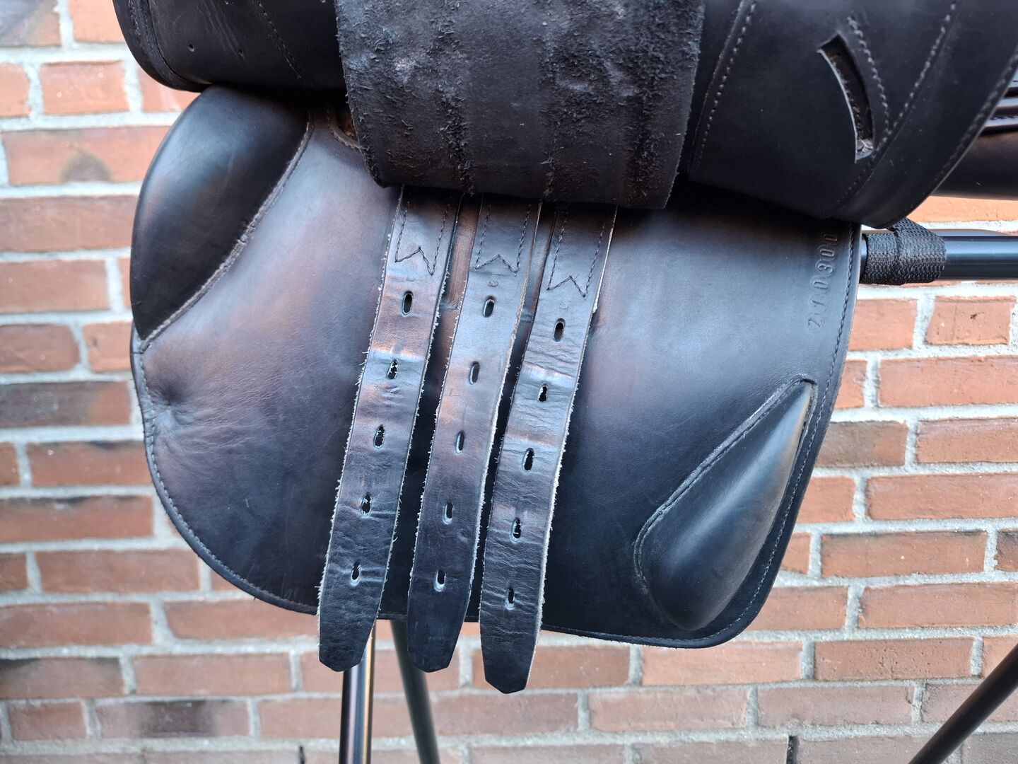 - Powierzchnia siedziska: 18 cali - Szerokość siedziska: ok. 33 cm (jeszcze nie wyregulowane) - Regularnie sprawdzane i tapicerowane przez rymarza