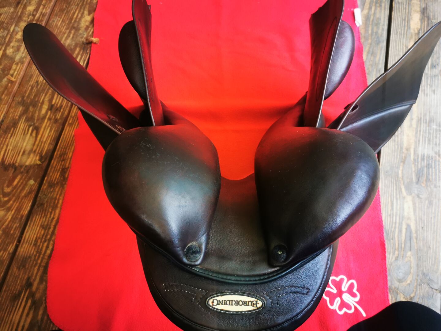 Siodło używane w dobrym stanie, bardzo miękko wyściełane podwójną skórą. Siodło zostało wyprodukowane przez Prestige. Panele, a zwłaszcza grzbiet siodła, można wyściełać i dopasować do konia.