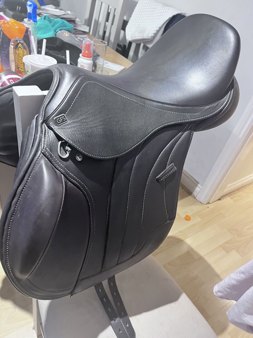 Beautiful GFS brown 17” jump-mono flap saddle . Brought in october 2022 did not suit our new horse so had to get a different saddle . Brought new for 1500 , still in excellent condition . Collection from northamptonshire nn10 area .