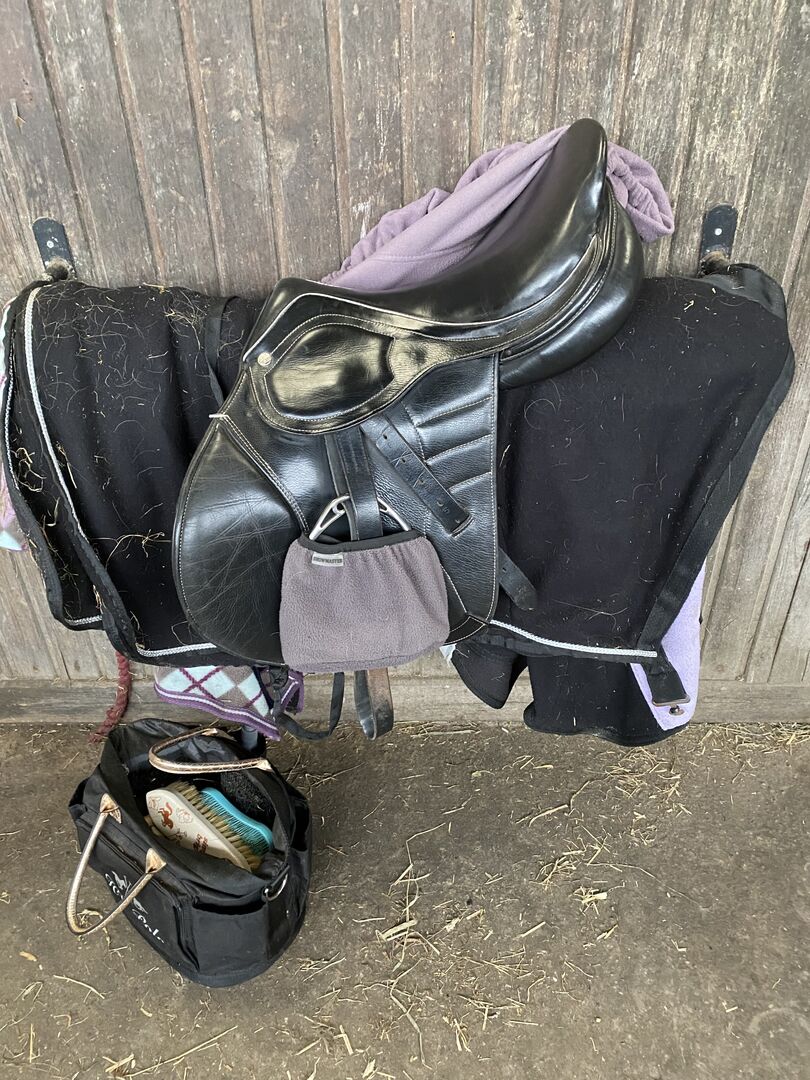 Siodło skokowe Horse Star - Siodło do skoków Horse Star Kolor ciemnobrązowy Komora 33 17/17,5 cala używane, bez pęknięć, bez dziur, miękka skóra, w dobrym stanie Siadaj i czuj się dobrze