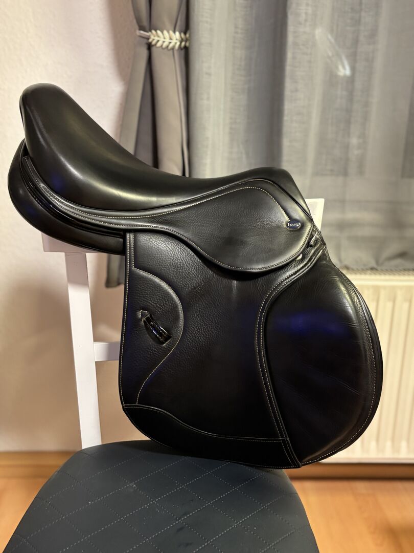 Siodło skokowe Ikonic - Siodło skokowe Ikonic 17 cali Oferuję na sprzedaż to piękne siodło skokowe, które zostało nowo wyprodukowane i zakupione dla nas w październiku 2021 roku.