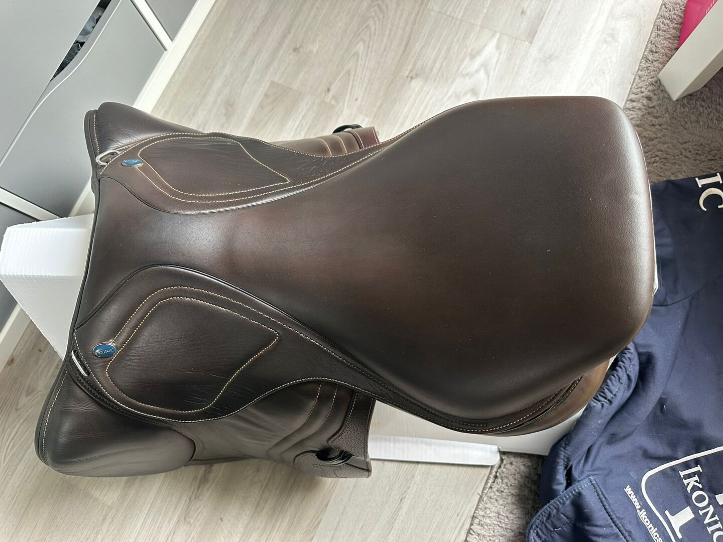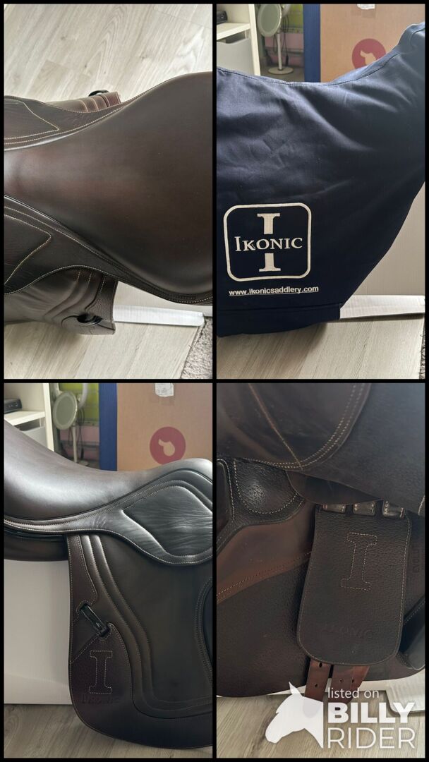 Siodło skokowe IKONIC - Sprzedam siodło skokowe firmy IKONIC. Kolor brązowy, 17 cali. Dostępna oryginalna faktura z sierpnia 2024 roku. Siodło można dostosować do konia poprzez zmianę płyty wpustowej. Siodło jest w optymalnym stanie. Sprzedawane prywatnie. Cena: 1800 VB