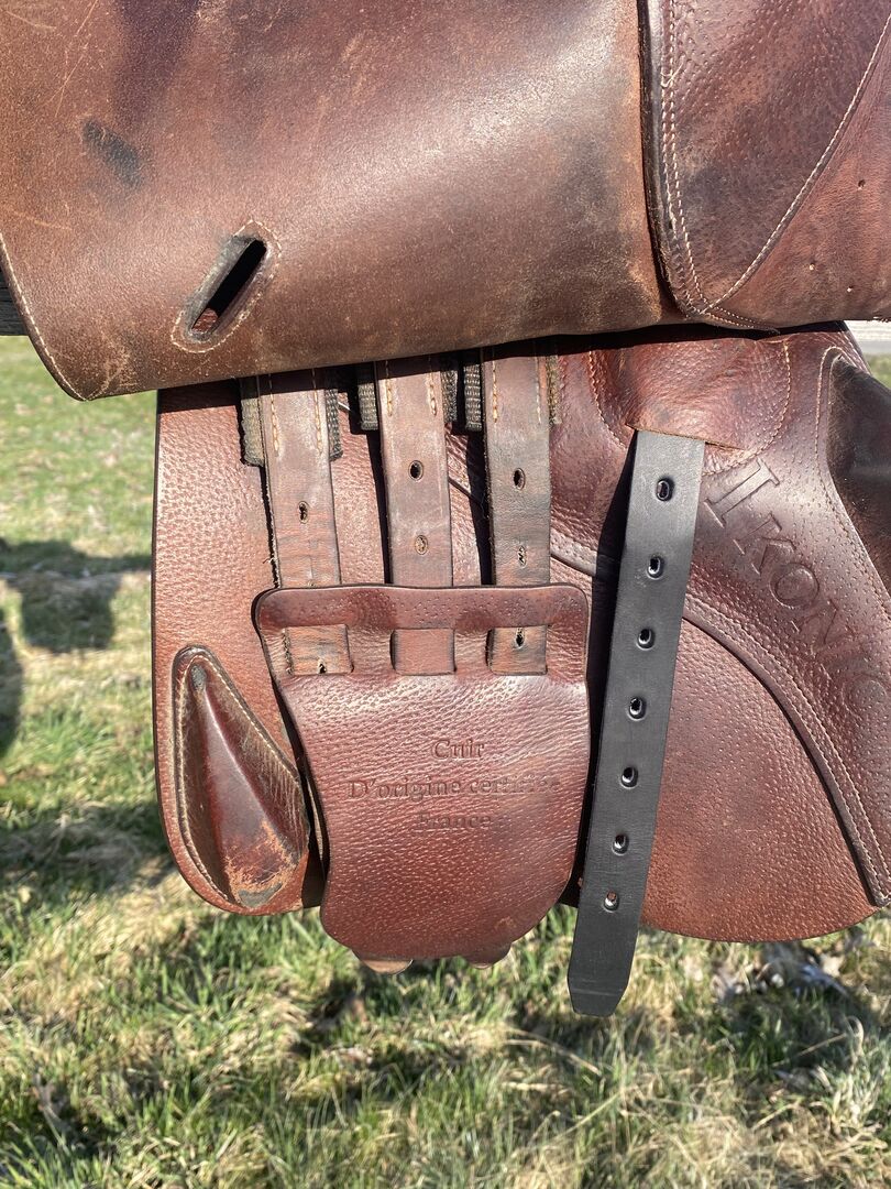 Siodło skokowe Ikonic Pro - Świeżo tapicerowane siodło skokowe Ikonic Pro. 17,5" płyta wpustowa może być wymieniona przez jeźdźca, zamontowana jest średnia płyta wpustowa.