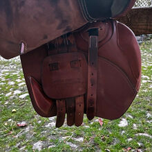 Siodło skokowe John Whitaker Argento 17 /34 - Oferuję tutaj piękne siodło skokowe angielskiej marki jeździeckiej John Whittaker Model : Argento Siodło ma 17 cali długości i szerokość komory 33/34 i jest jak cwd pod względem kroju i wałków kolanowych Niestety nie pasuje na mojego konia