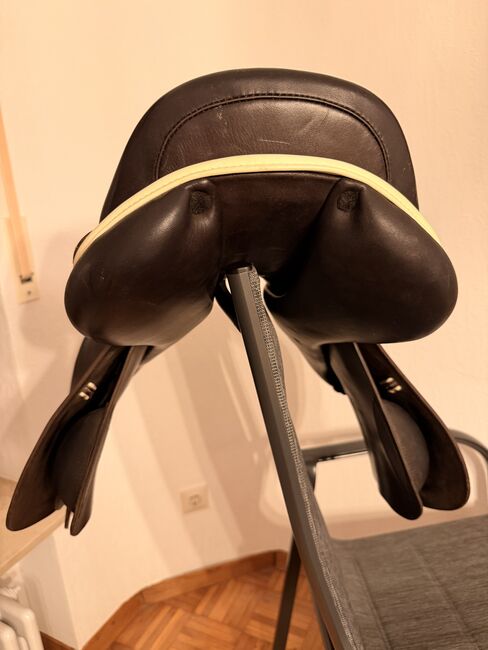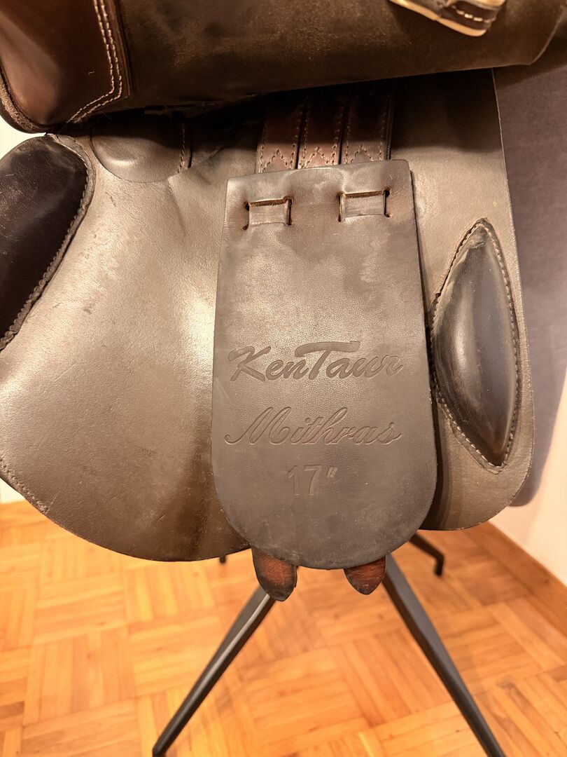 Siodło skokowe Kentaur Mithras 17", jak nowe - Sprzedaję z ciężkim sercem moje ukochane siodło skokowe Kentaur 17 cali, w eleganckim ciemnobrązowym kolorze z białymi wykończeniami, mniej niż 2 lata, GRP SLIM" = wąski łęk z włókna szklanego "dla wąskiej miednicy / mniejszych jeźdźców (często kobiet)". Szerokość komory 2 (średnia). super kontakt z koniem, ultra miękka skóra. NP 2400. wysyłka lub odbiór w 72270 Baiersbronn lub 51688 Wipperfürth.