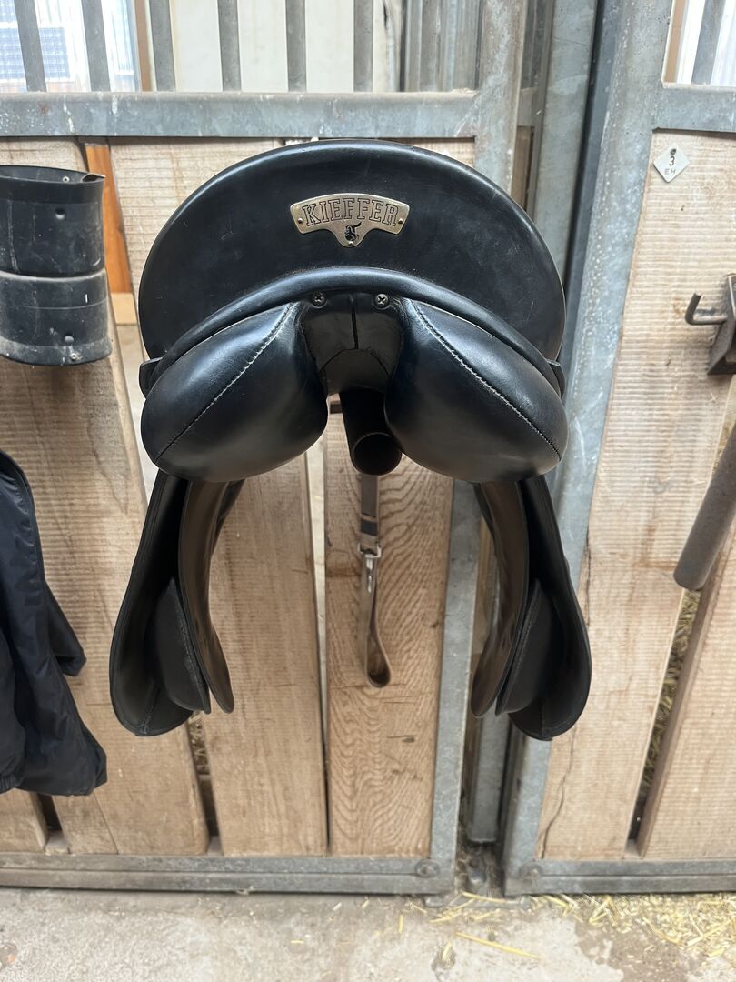 Siodło skokowe Kieffer - Sprzedaję moje siodło skokowe Kieffer. Dopasowane do dużego konia rasy warmblood z dużym podbiciem i dużym huśtawką. Średnia komora.
