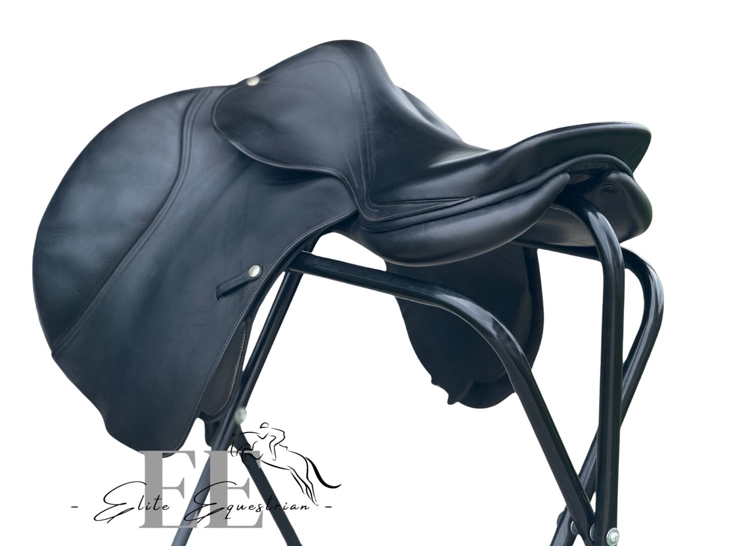 Siodło skokowe L. Bierry Biarritz 17,5" - Na sprzedaż jest wysokiej jakości siodło skokowe L. Bierry Biarritz w bardzo dobrym stanie. To francuskie siodło ma elegancki wygląd i wysoki poziom komfortu - idealny wybór zarówno dla ambitnych jeźdźców rekreacyjnych, jak i sportowych. Jego konstrukcja typu close-contact pozwala na bezpośredni kontakt z koniem, a tym samym lepsze pomoce, zapewniając jednocześnie stabilne i bezpieczne siedzisko. Siodło jest wyposażone w miękką lateksową wyściółkę i ma elastyczny drewniany łęk, dzięki czemu bardzo dobrze pasuje do koni o normalnym grzbiecie i średnim kłębie. Jest to model z mniejszymi wałkami na udach i łydkach, zapewniający wystarczające wsparcie bez ograniczania swobody ruchów. Jest to doskonałe siodło dla jeźdźców poszukujących stylowego i wytrzymałego siodła skokowego, które może dorównać jakością znanym francuskim markom - ale w znacznie bardziej atrakcyjnej cenie.