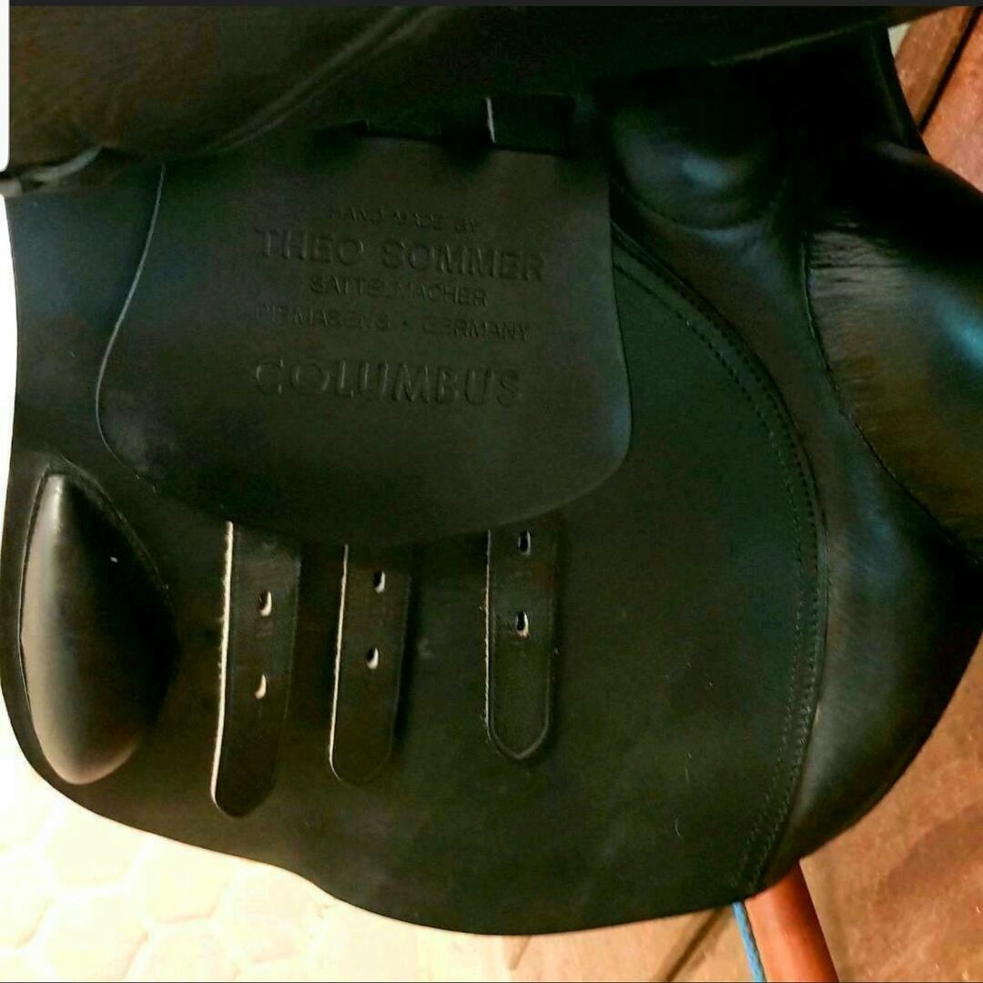 Siodło skokowe letnie 17,5 cala - Siodło skokowe Sommer, model Columbus, 17,5 cala, zostało kupione z drugiej ręki. Niestety, nie pasuje on do mnie i mojego konia. A szkoda, bo siodełko w kolorze czarnym to marzenie i jest superwygodne.