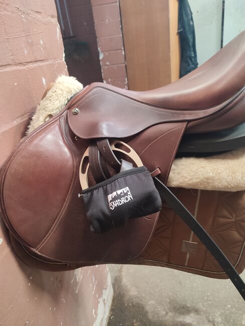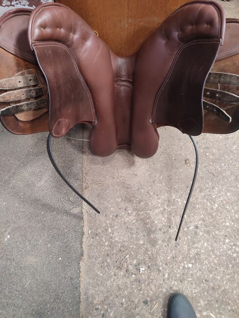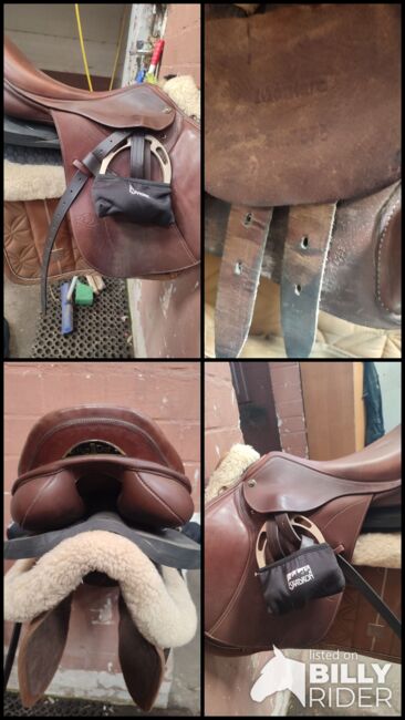 Siodło skokowe na sprzedaż - Witam, sprzedaję moje siodło skokowe Ruiz Diaz Montaro, 17 cali, szerokość komory 32 w kolorze brązowym. Siodło było na moim WB, z normalnym kłębiem i ogólnie normalną budową, dostępna średnia płyta przełykowa, zobacz zdjęcia i również ją sprzedam, siodło można łatwo regulować. Niestety siodło nie jest dla mnie. Siodło można wysłać za dodatkową opłatą za koszty wysyłki lub odebrać bezpośrednio ode mnie w 30916 Isernhagen. Siodło jest w doskonałym stanie i dobrze utrzymane.