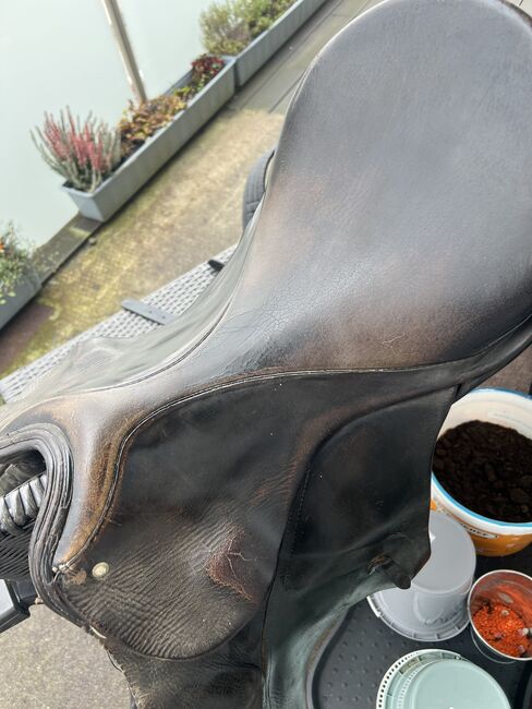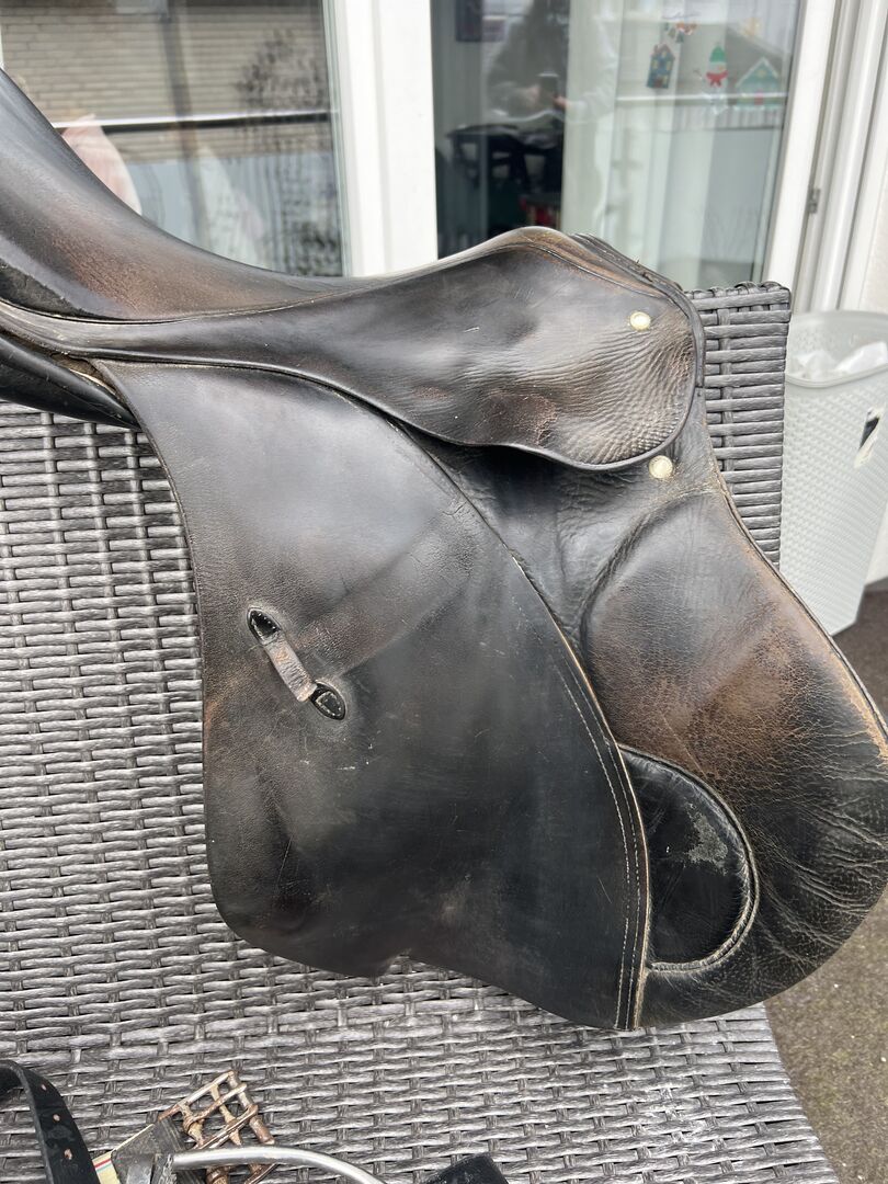 Siodło skokowe Passier 17 cali - Sprzedaję nieco starsze 17-calowe siodło skokowe Passier, które idealnie nadaje się jako siodło przejściowe lub jako projekt renowacji. Siodło nosi ślady użytkowania. Wymagałoby ponownego wyściełania, ponieważ wyściółka nie jest już optymalna. Ponadto w niektórych miejscach szwy się rozpięły i powinny zostać profesjonalnie naprawione. Ogólnie rzecz biorąc, skóra jest nadal obecna i w dobrym stanie, ale przy odrobinie troski i kunsztu można ją przekształcić z powrotem w solidne i wygodne siodło. Idealne dla hobbystów, jako drugie siodło lub dla kogoś, kto chce tanio kupić markowe siodło i zrobić je samemu. Cena podlega negocjacji. Zainteresowanych proszę o kontakt