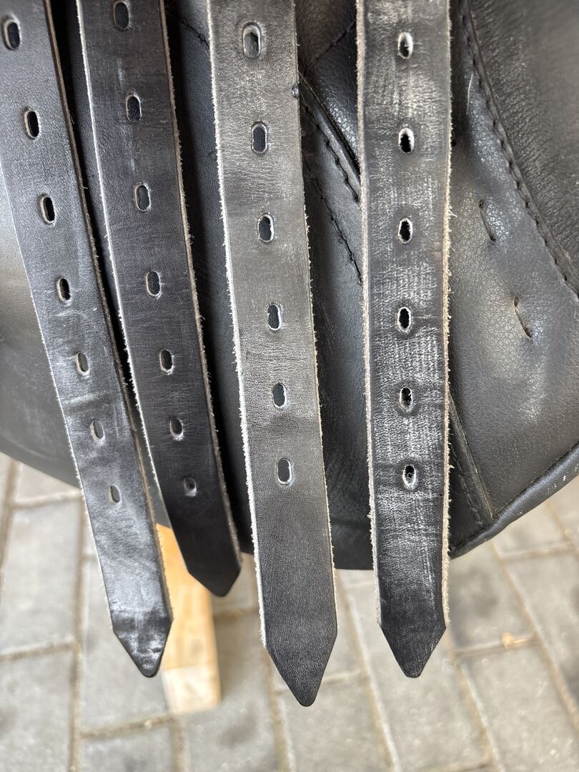 16,5 cala Szerokość komory w Czarna skóra Jak nowe! Kupiony w czerwcu 2023 roku Był na kucyku w sumie 10 razy i po prostu leżał ze mną przez 1,5 roku. Kupione dla kuca o wąskim rozmiarze końcowym Nvp:2400
