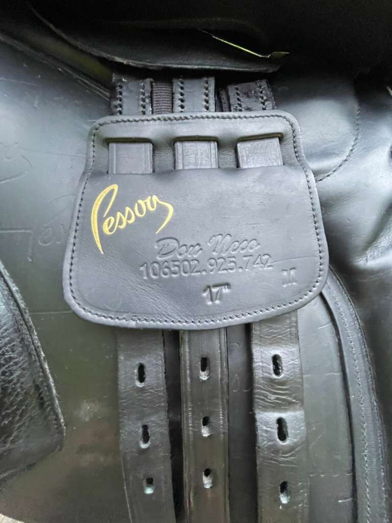 Siodło skokowe Pessoa - Sprzedam moje bardzo dobrze utrzymane siodło skokowe firmy Pessoa. Model Don Neco w kolorze czarnym. Siedzisko ma rozmiar 17", a szerokość komory jest określona jako rozmiar M. Mogę jeszcze zrobić dokładne pomiary. Niestety mój wałach z niego wyrósł i potrzebuje nowego siodła. Siodło było używane bardzo mało i dlatego jest w idealnym stanie. Zawsze uważałam je za bardzo wygodne do jazdy. W razie jakichkolwiek pytań proszę o kontakt.