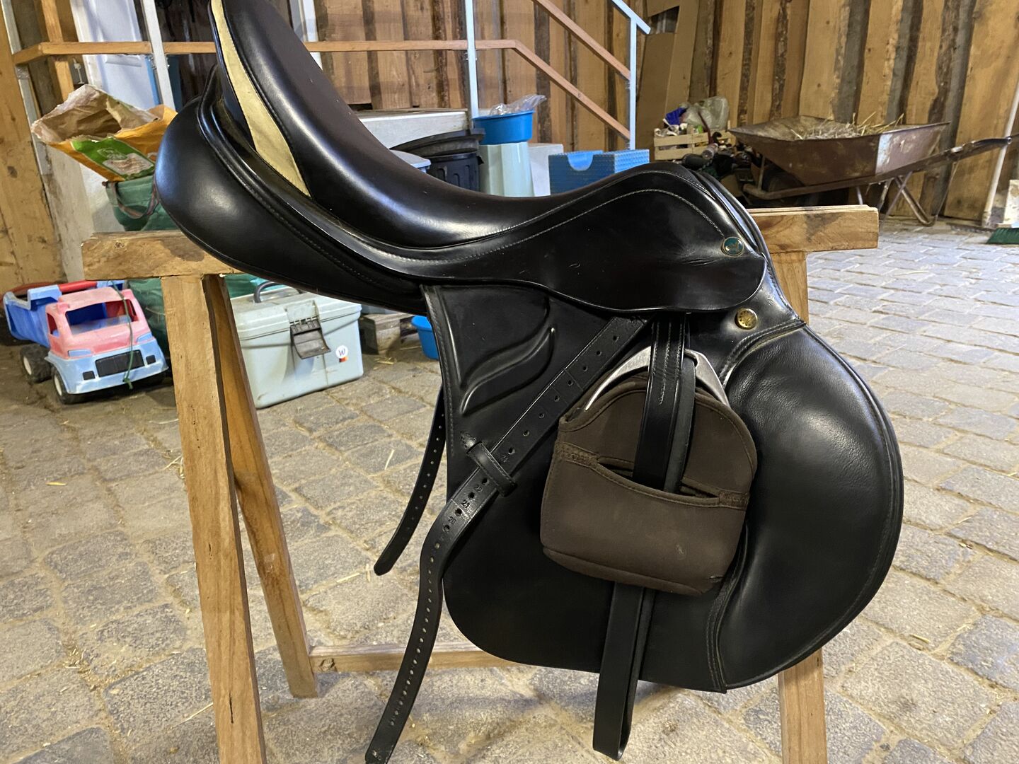 Jak widać po numerze producenta, zostało ono wykonane dopiero w marcu 2020 roku. Siodło jest więc w bardzo dobrym stanie i przez rok było używane tylko sporadycznie, gdyż potem zrobiłam sobie roczną przerwę na dziecko. Ponieważ przez ten okres zmienił się grzbiet mojego konia, potrzebuję teraz nowego siodła.