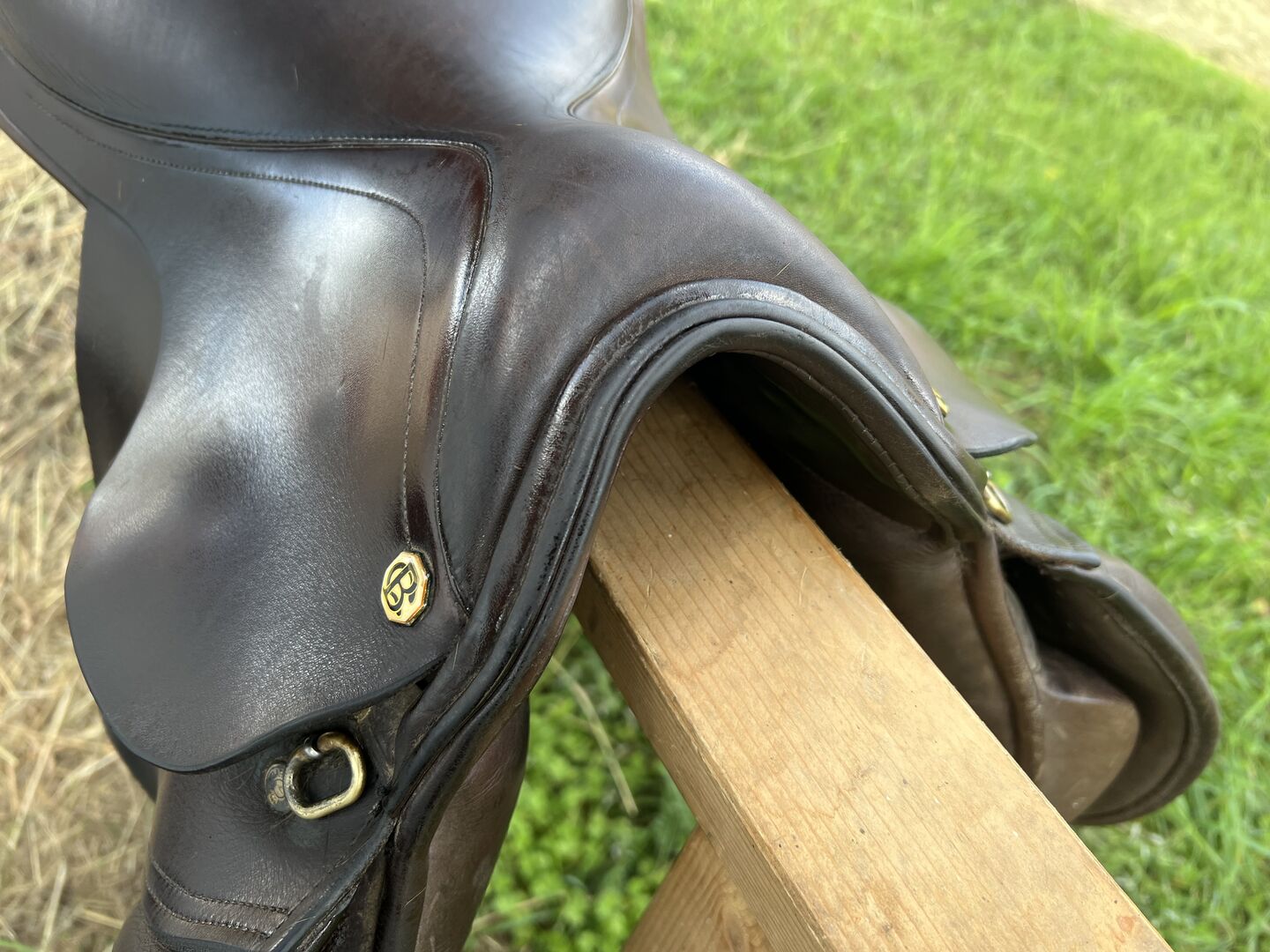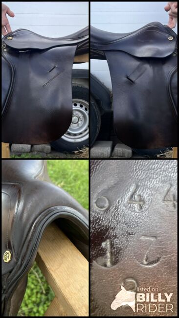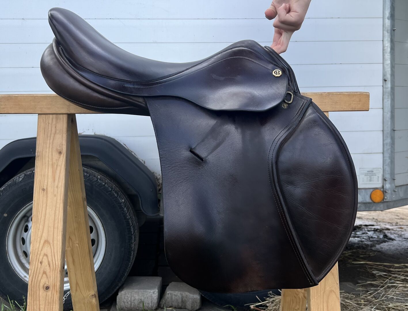 Siodło skokowe Schockemöhle Barnsby brązowe - Sprzedaję moje siodło skokowe, którego lubię używać, ponieważ niestety nie pasuje już na mojego konia. Siodło jest w dobrym, zadbanym stanie. Informacje o rozmiarze można znaleźć na zdjęciu 6, chętnie zmierzę ponownie szerokość komory i powierzchnię siedziska.