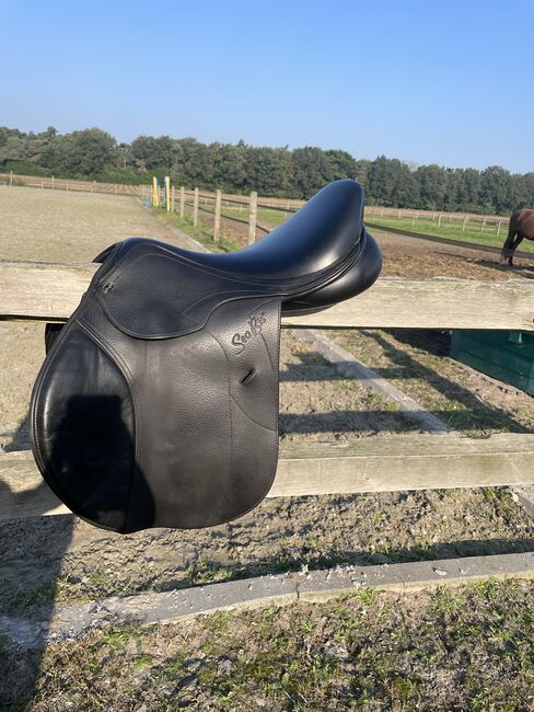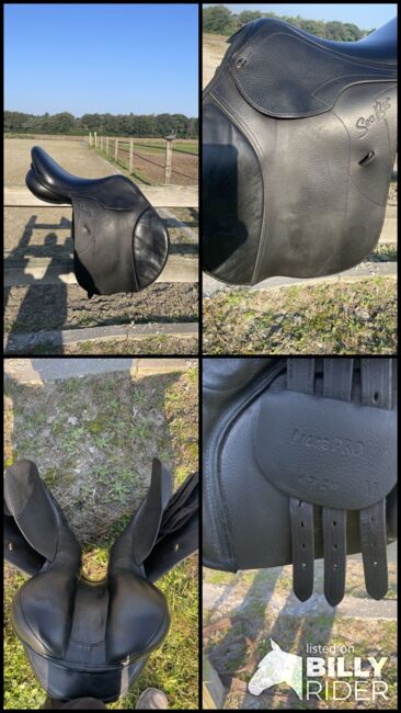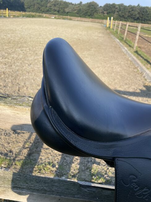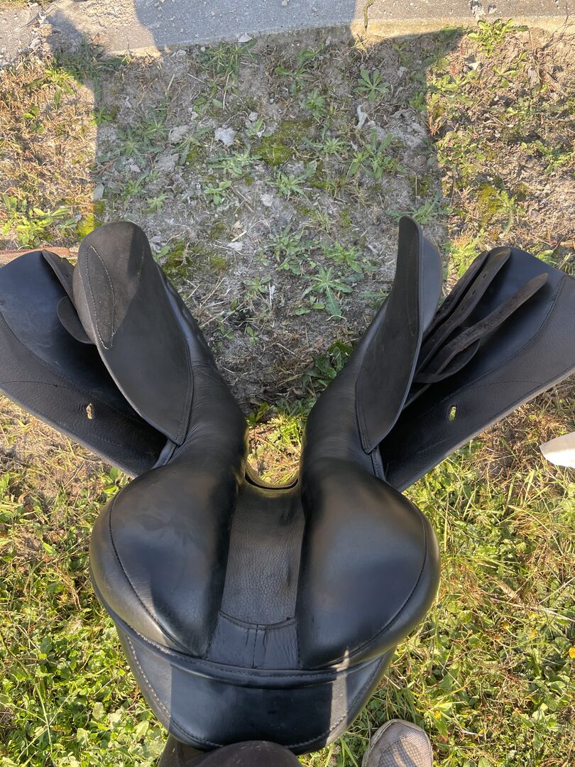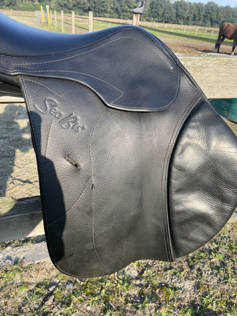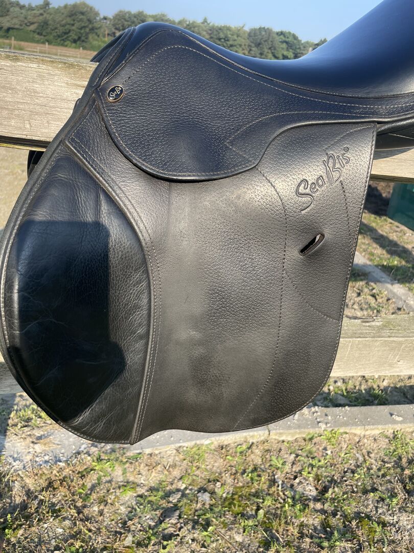 Siodło skokowe Seabis - Cześć! Sprzedaję moje siodło skokowe Seabis. Kupiłem je w sierpniu 2023 roku. Używałem siodła tylko przez cztery Montis, więc nie było używane zbyt często i jest w świetnym stanie! Siodło skokowe Seabis 17,5 cala, z wymiennym łękiem, teraz ze średnim. Łatwe do wymiany. Siodło ma przednią i tylną rolkę i jest wykonane ze skóry.
