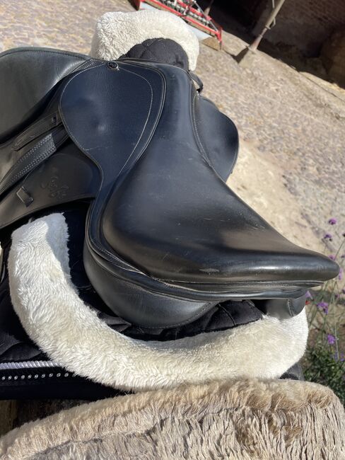 Siodło skokowe Seabis Barcelona - Sprzedaję moje siodło skokowe od Seabis 17,5 cala Wymienna płyta wpustowa Fioletowe szerokie dopasowanie Ma około 3 lat i ma normalne ślady użytkowania Kosztowało 1,800 kiedy było nowe. W zeszłym roku został ponownie tapicerowany przez rymarza.