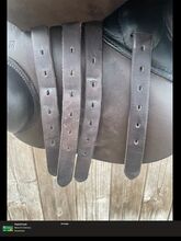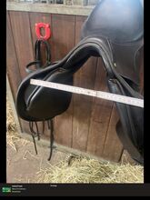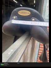 Siodło było ze mną przez mniej niż sześć miesięcy i jest prawie jak nowe. Ma naprawdę ładny szeroki kanał grzbietowy. Jest bardzo miękkie i wygodne. Ma cztery paski do popręgu. Siedzisko ma 17,5 cala Szerokość wpustu wynosi 31