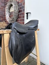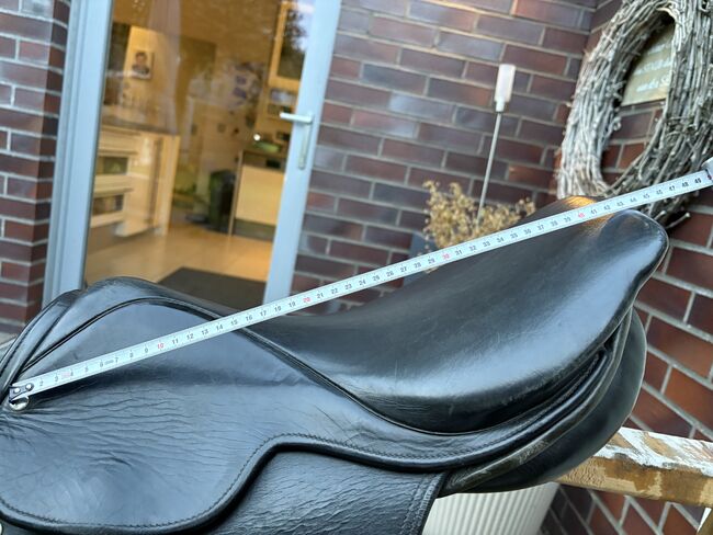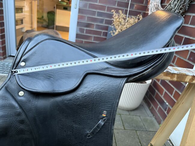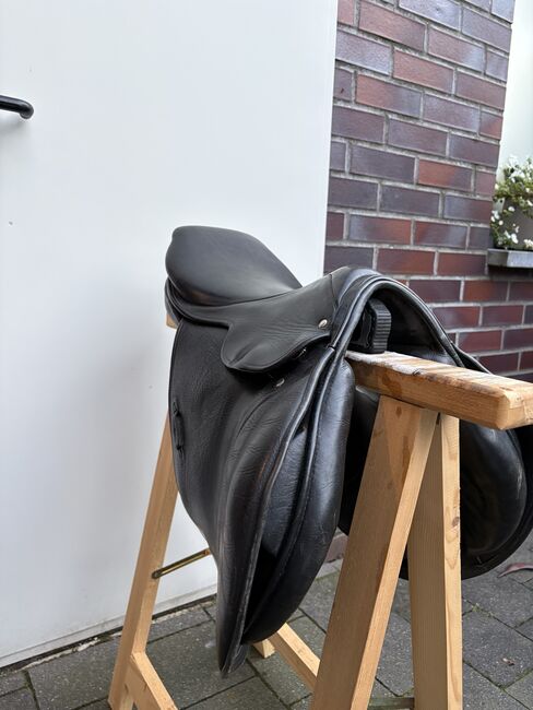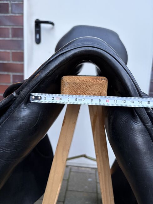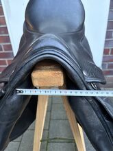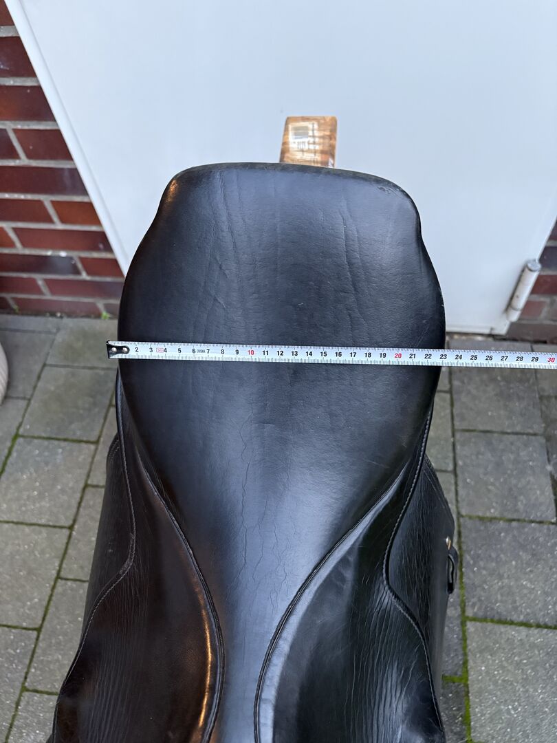 Rozmiar siedziska to około 16"-16,5" (mierzone na podstawie zdjęć). Pozostałe wymiary i szerokość komory można również znaleźć na zdjęciach. Siodło było ostatnio używane na koniu o normalnej budowie i oferuje jeźdźcowi wygodną pozycję siedzącą, a także dobre wsparcie podczas skoków.