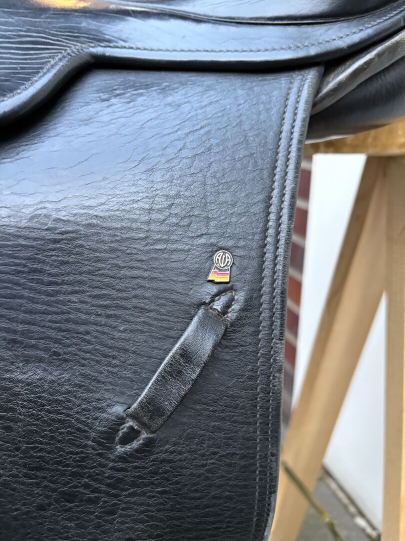 Siodło skokowe Waldhausen - Oferuję dobrze zachowane siodło skokowe Waldhausen w klasycznym czarnym kolorze. Siodło nosi normalne ślady użytkowania (patrz zdjęcia), ale ogólnie jest w dobrym stanie.