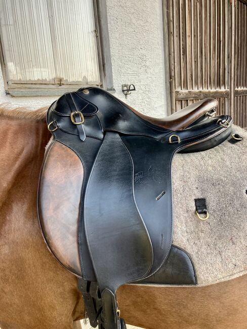 Siodło nadaje się dla wąskiego, najlepiej krótkiego konia, np. araba, ze średnim kłębiem i lekkim huśtawką w grzbiecie. Miałam je na ćwiartce. Jest bardzo wygodne dla konia i jeźdźca. Odbiór w M-Stadt, Isen-Ed lub okolicach Lipska / Altenburga