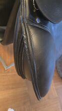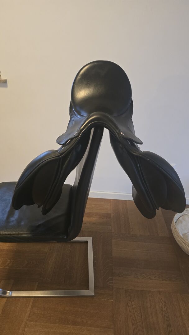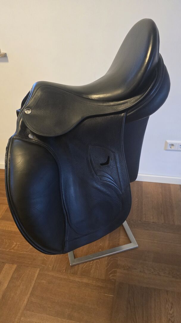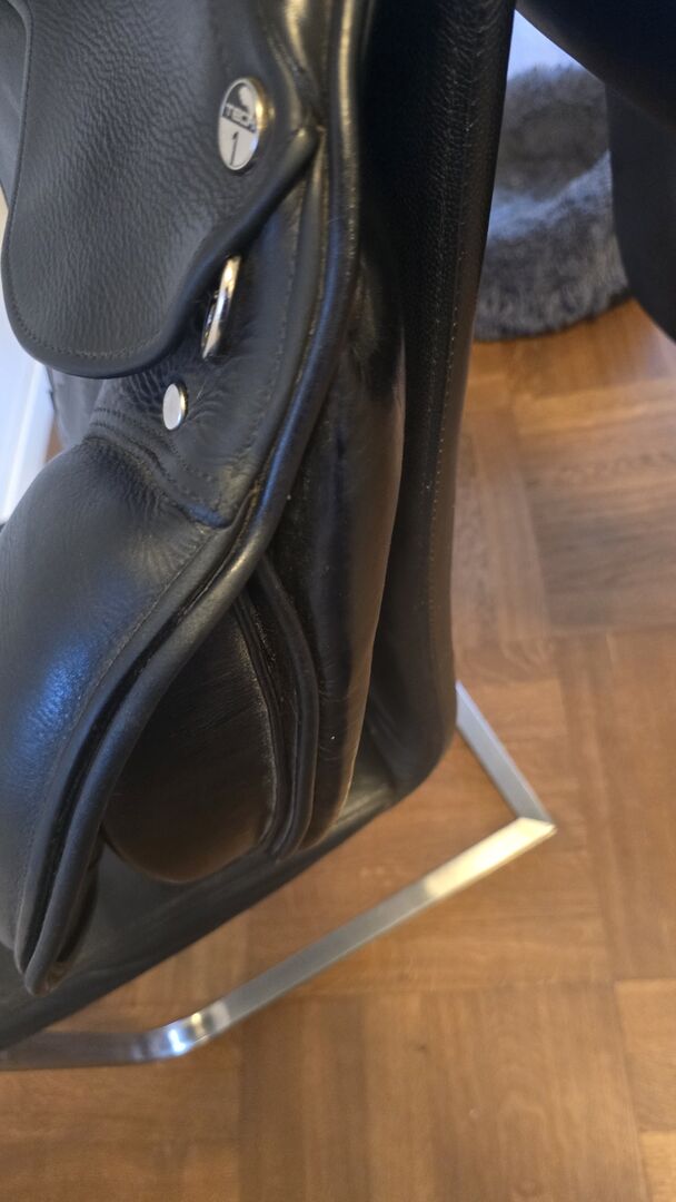 Siodło Tech 1 VS Dressage 17" - Sprzedaję moje siodło Tech 1 17" kupione jako nowe w 2022 roku. Należy pamiętać, że po obu stronach przedniej krawędzi widoczne są ślady zużycia, a skóra jest uszkodzona. W razie potrzeby mam na to pokrowiec (patrz zdjęcie). Siodło było świeżo wyściełane i sprawdzane co najmniej raz w roku. Oryginalna podkładka pod siodło Tech1 jest również sprzedawana. Klapę można zdjąć za pomocą rzepu. Oryginalna cena zakupu 2800€.