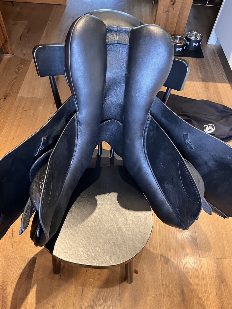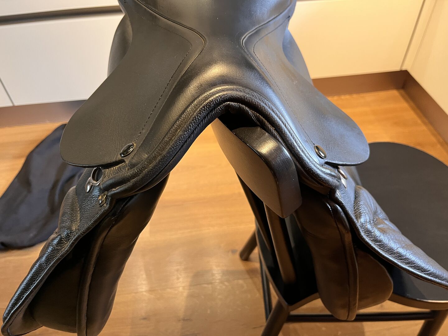 Siodło Tecno Grenoble VS 18 cali jak nowe - TOSONI SELLERIA - Na sprzedaż jak nowe, wysokiej jakości siodło VS wykonane z prawdziwej skóry przez zakład rymarski TOSONI SELLERIA z Włoch. Siodło otrzymałem jako nowe w styczniu 2025 roku.