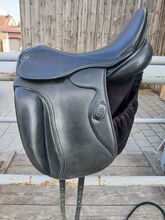Rozmiar siedziska 17", krótki obszar kontaktu ok. 42 cm Paski obwodu można ustawić indywidualnie. Dobre wsparcie dla jeźdźca dzięki klapie.