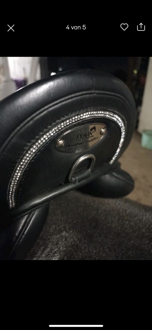 Siodło ujeżdżeniowe 14 cali Shetty Pony - Prawie nowe 14-calowe (34 cm powierzchni styku) siodło shetty/pony od Tysons breeches w kolorze czarnym z brokatem. Zawiera pasujące strzemiona (10), skóry strzemion i podkładki pod siodło. Bez popręgu. Niestety ma kilka małych zadrapań na górze, ale tak naprawdę ich nie widać. (zdjęcie 5) Siodło zostało obite przez rymarza, a przełyki można zmienić. Sprzedaję go, ponieważ jest niestety trochę za duży dla moich kucyków.