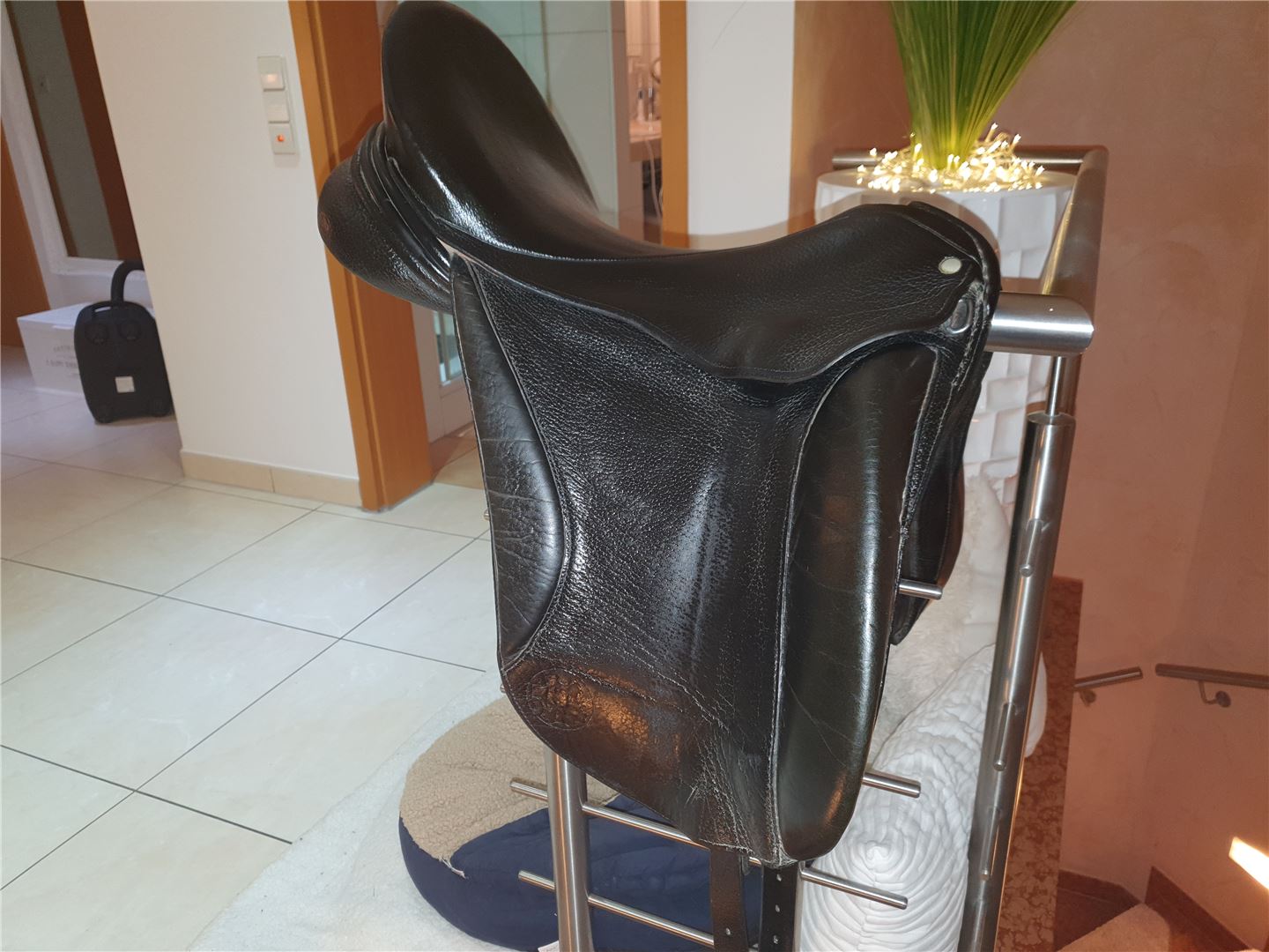 Siodło ujeżdżeniowe - Sprzedaję siodło Henning, ma 18" i 33 KW. Nadaje się również dla mniejszych jeźdźców, ponieważ posiada krótką klapę pod siodło. Wymaga jednak usztywnienia, dlatego jest na sprzedaż poniżej wartości.