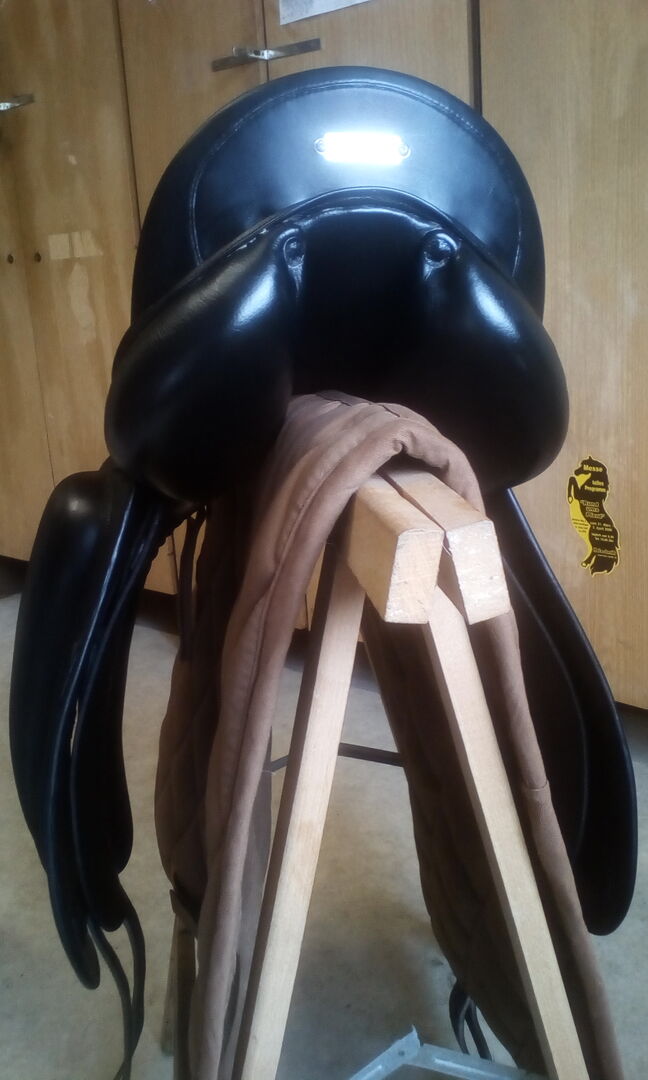 Siodło ujeżdżeniowe - Trzy lata używany tylko z Zalea (okrycie futrzane), bardzo dobrze utrzymany, szerokość komory 32 została zmieniona na 34, siedzisko 17", dobrze dopasowany do średniego i wyższego kłębu. Poduszki z pamięcią - gumowe, nie muszą być wyściełane. Oddany tylko dlatego, że nie pasuje do mojego nowego konia. W komplecie z jagnięcą skórą zalea i nieużywanym ochraniaczem na siodło oraz skórzanym pasem na życzenie.