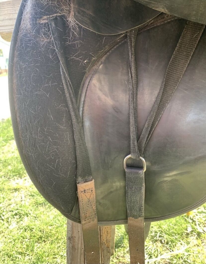 Siodło ujeżdżeniowe - Sprzedaję siodło ujeżdżeniowe. Kupiłam go w marcu, aby towarzyszył mojemu pierwszemu koniowi. Niestety, nie pasuje już idealnie. Nie potrafię powiedzieć, kiedy dokładnie został kupiony i ile ma lat. Stan siodełka można obejrzeć na zdjęciach. Ponieważ stan nie jest już tak dobry, niska cena! Strzemiona nie są uwzględniane przy zakupie. Skóry na strzemiona i pas mogę dołączyć na życzenie. Jeśli jesteś zainteresowany i/lub masz dodatkowe pytania, skontaktuj się ze mną.