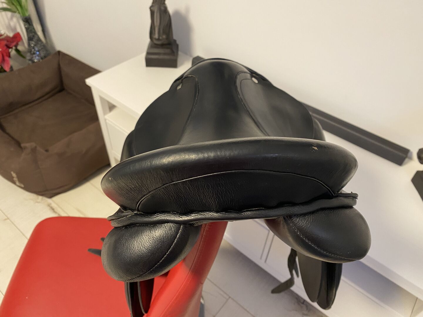 Siodło ujeżdżeniowe 17" - Z ciężkim sercem muszę się rozstać z moim siodłem ujeżdżeniowym. Niestety, nie pasuje on już na mojego wałacha. Sam kupiłem go w serwisie Ebay Classifieds. Ma 17-calowe siedzisko i jest bardzo wygodne. Dzięki podkładkom z tyłu doskonale dopasowuje się do końskiego grzbietu. Ma ładny, szeroki kanał kręgowy i musi mieć średnią komorę. Dzięki dużym pomponom noga była naprawdę dobrze przymocowana do konia i dawała jeźdźcowi optymalne oparcie. Ma nieco krótszą powierzchnię styku z podłożem i jest odpowiednia dla koni z krótkim grzbietem. Oczywiście jest on używany i widać na nim ślady użytkowania. Wysyłka jest oczywiście możliwa za dodatkową opłatą. W razie jakichkolwiek pytań proszę pisać do mnie. Pozdrawiam