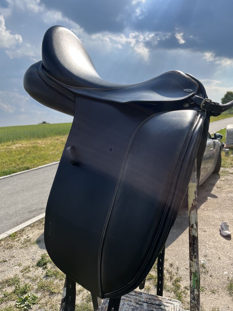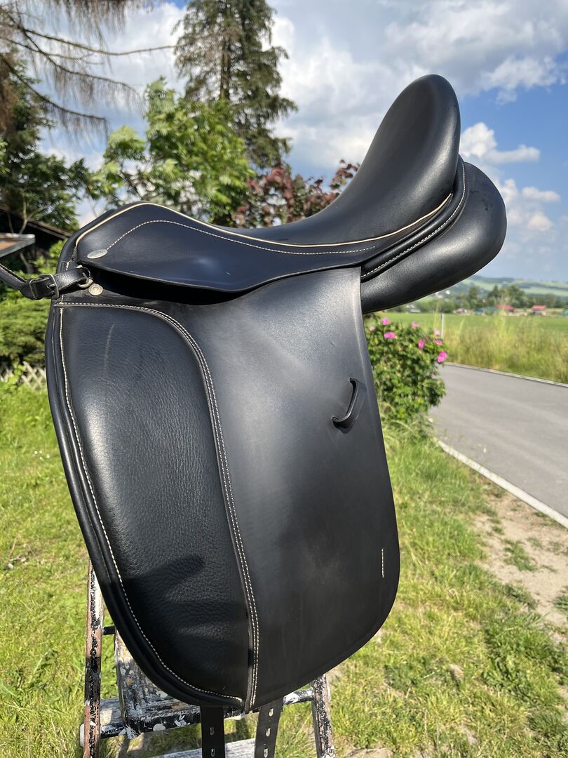 Siodło ujeżdżeniowe 17,5 - Oferuję siodło ujeżdżeniowe w idealnym stanie w rozmiarze 17,5 Czarna skóra i kremowa lamówka Dobrze nadaje się dla nieco obszernych koni z normalnym wysokim kłębiem Dość głębokie siedzisko i miękko wyściełane NP 1800€ Możliwa wysyłka lub odbiór Możliwość wypróbowania siodła za pozostawieniem ceny zakupu (odbiór lub wysyłka)