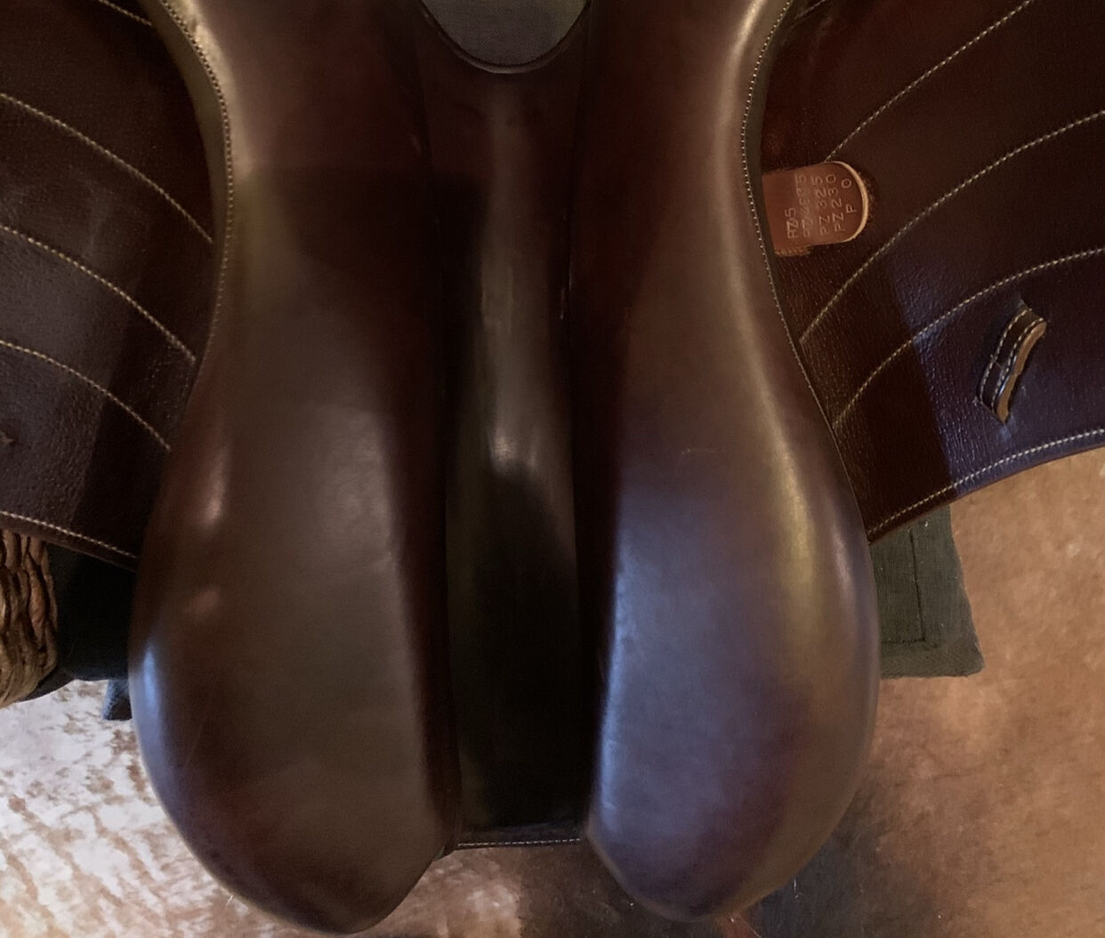 Siodło ujeżdżeniowe 17,5 brązowe - Bardzo zadbane i mało używane siodło ujeżdżeniowe luksusowej marki Devocoux w kolorze brązowym, 17,5 cala, wraz z dopasowanymi kolorystycznie skórami strzemion oraz wędzidłem (Ultrasoft) Kieffer w rozmiarze dla koni pełnej krwi. 999 bez uzdy/ podkładki żelowej