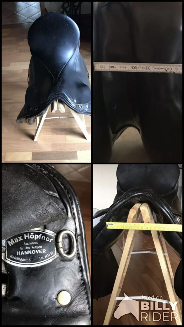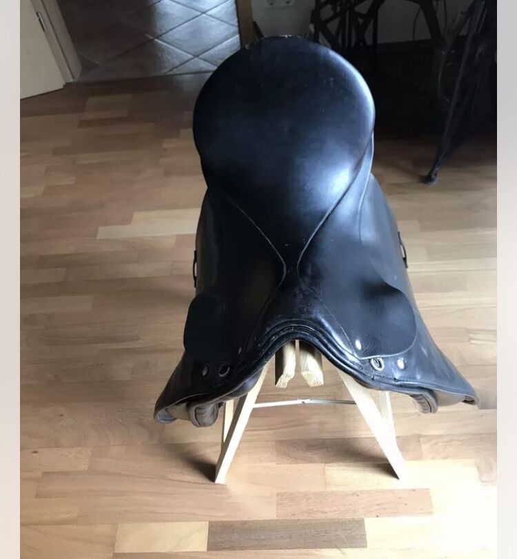Siodło ujeżdżeniowe - Jest to siodło ujeżdżeniowe Dressage F firmy Höpfner. Ma średnią komorę i szeroki kanał kręgowy. Dobrze nadaje się dla koni z napędem. Tutaj był na klaczy fryzyjskiej.