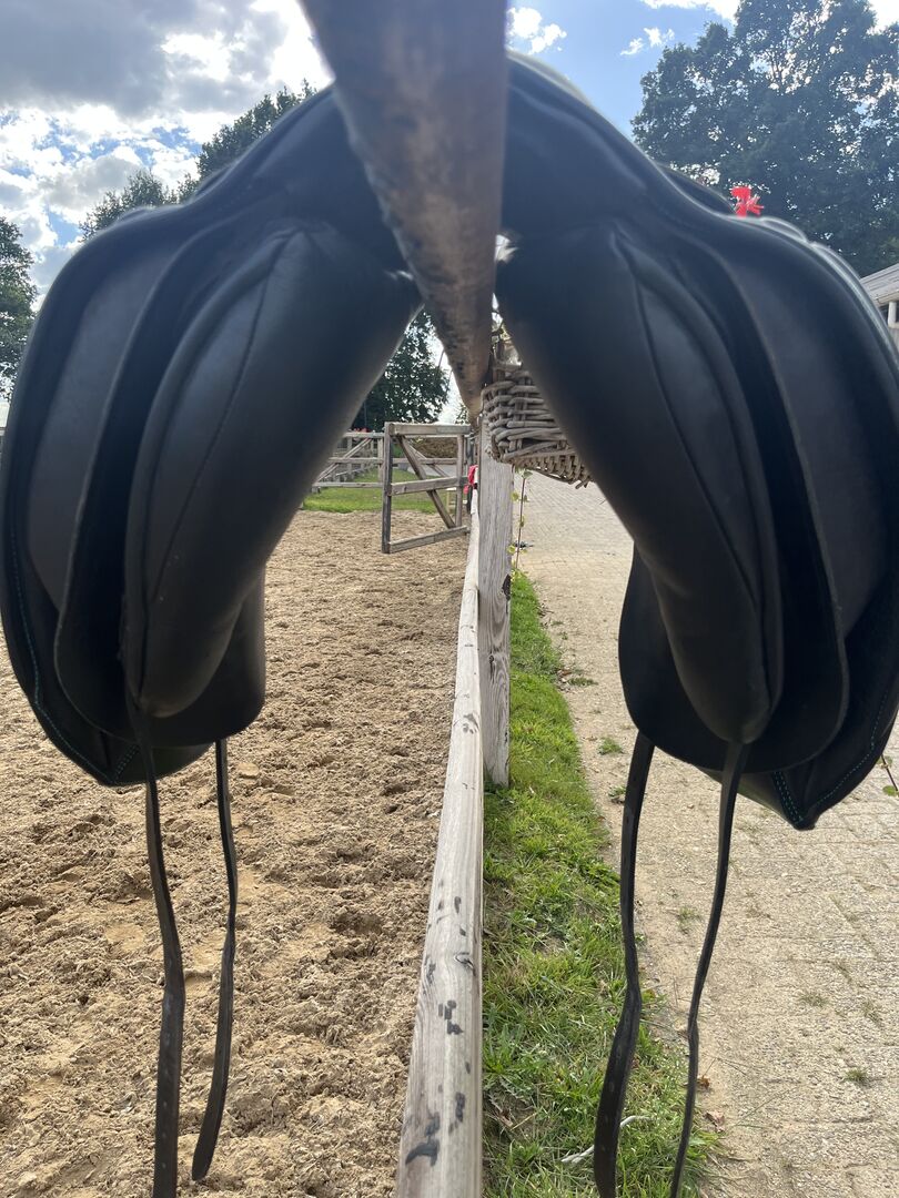 Siodło ujeżdżeniowe 18 cali Loxley Bliss of London - Piękne 18-calowe siodło Lockley Bliss of London wykonane z cielęcej skóry. Z 17-calowymi poduszkami i średnim łękiem. Daje to przestronne siedzisko dla jeźdźca i komfort dla konia. Niestety siodło jest dla nas za duże, 18 cali i długie łopatki nie idą w parze. Dla jeźdźca około 165.