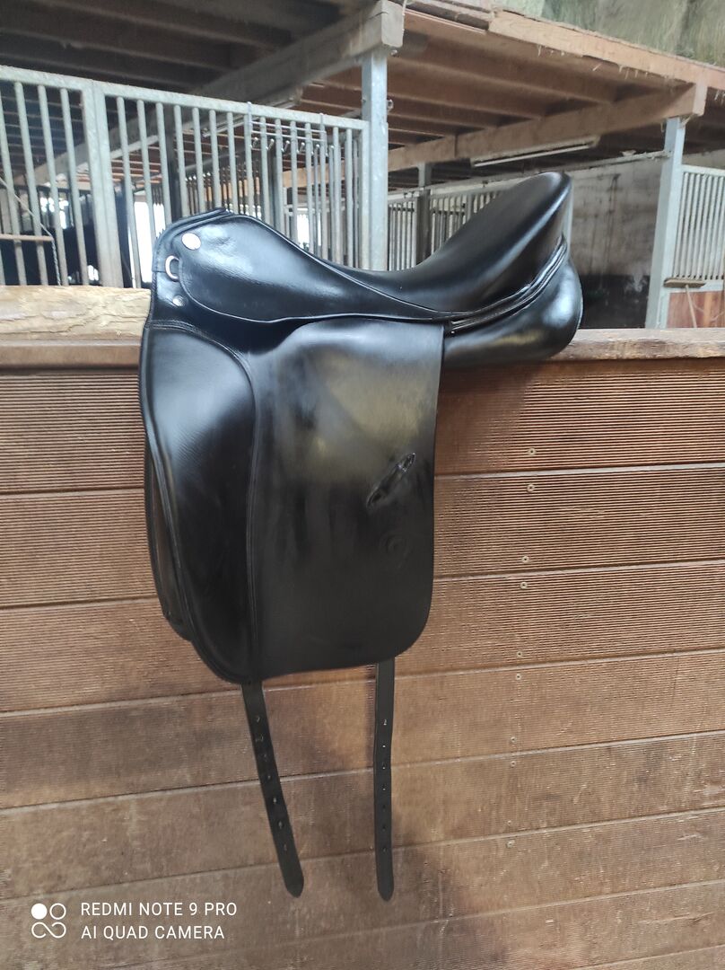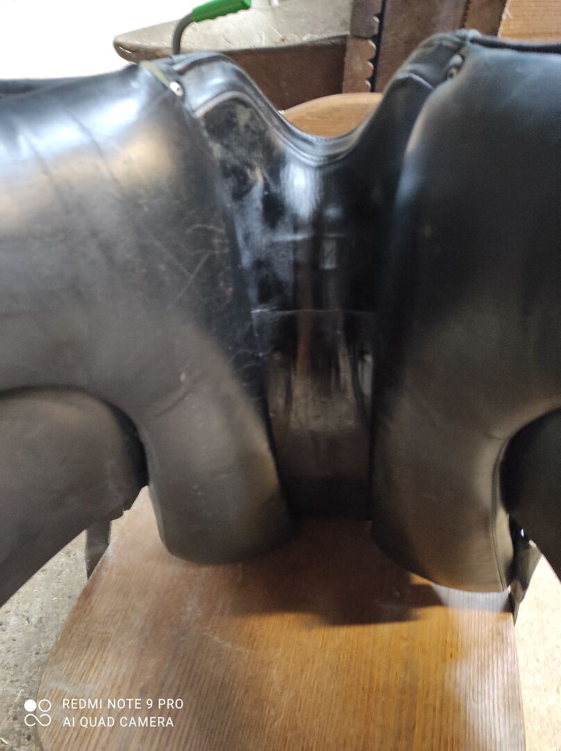 Siodło ujeżdżeniowe - Sprzedaję używane siodło ujeżdżeniowe Otto Schumacher.wady widać na zdjęciach.ponieważ kupiłem siodło używane w 2020 roku, niestety nie są znane żadne dane / nie ma dostępnej faktury. Pęknięcia mogą być naprawione przez rymarza, a siodło jest poza tym zdatne do użytku, z wyjątkiem śladów użytkowania. Paski do popręgu zostały również odnowione w 2020 r. Przez rymarza. KW powinien wynosić 32 lub 34.