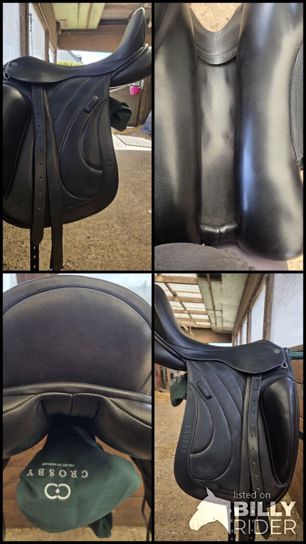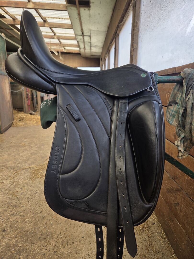 Siodło ujeżdżeniowe - Oferuję wygodne siodło ujeżdżeniowe marki Crosby, które kupiłam nowe w zeszłym roku. Siedzisko ma 17,5 cm, w razie pytań proszę o kontakt.